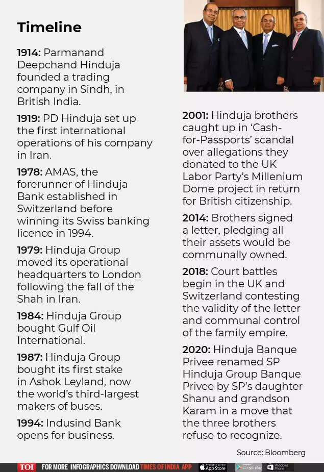 Gopichand, Prakash and Ashok were defending the validity of a letter signed in 2014 by the four brothers stating that assets held by one belong to all. That came as SP — represented by his daughter Vinoo — claimed sole ownership of Geneva-based Hinduja Bank.