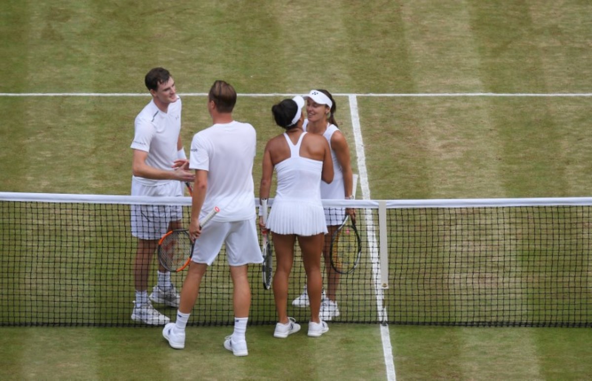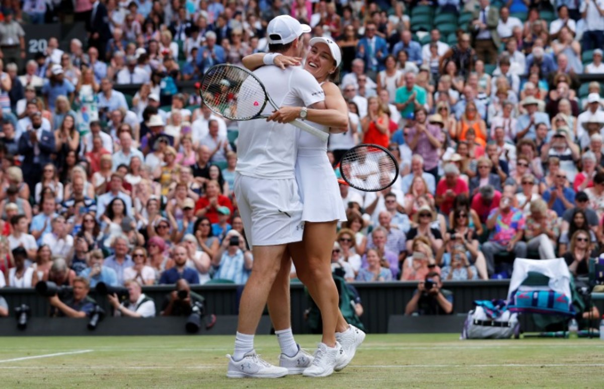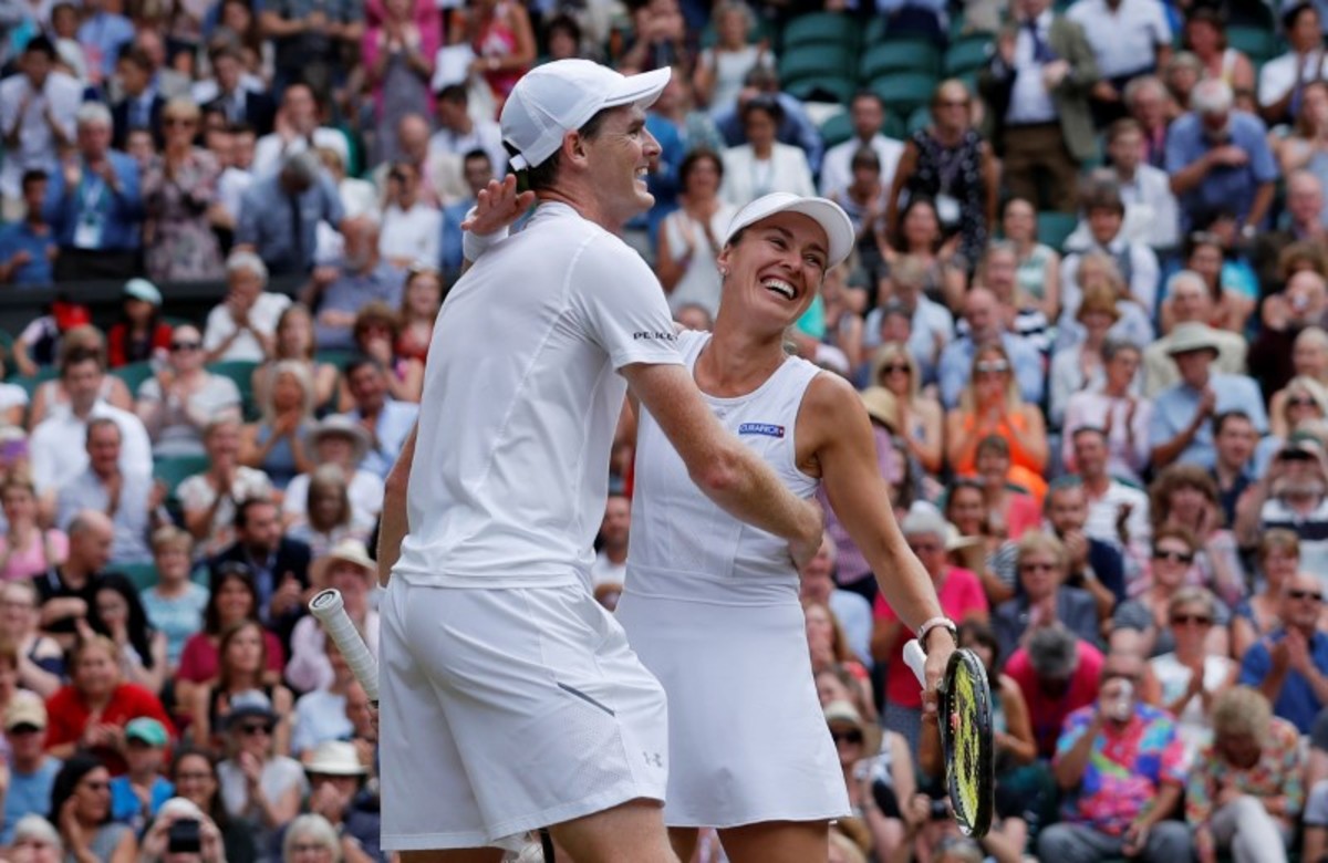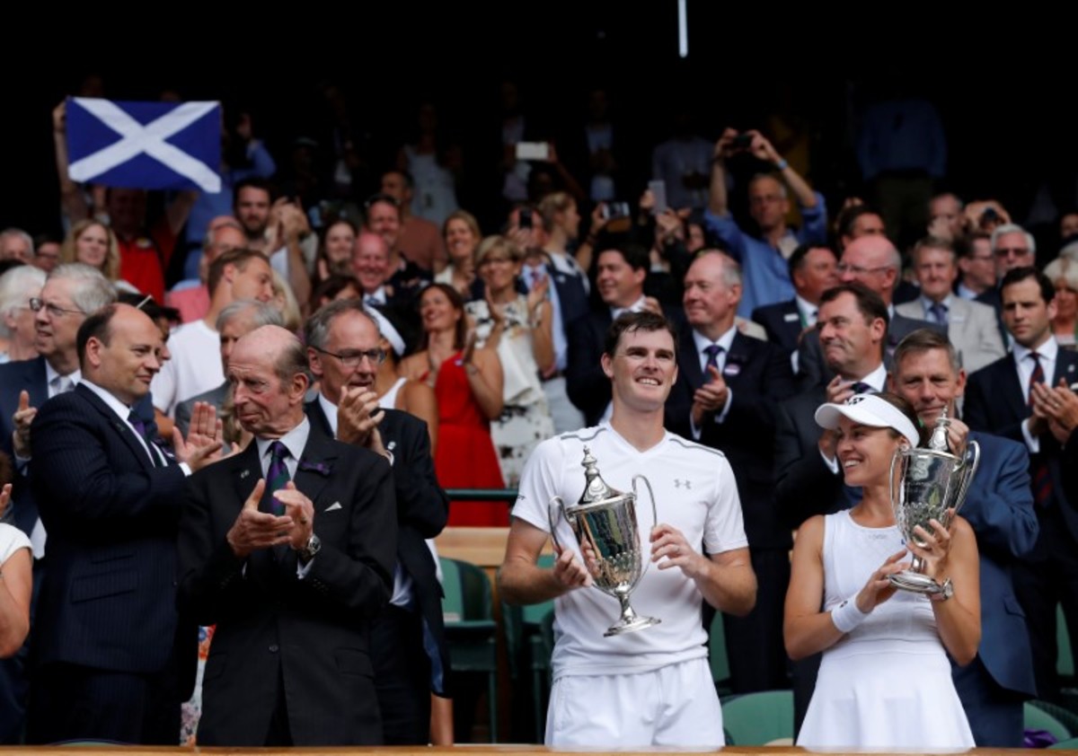 Tennis - Wimbledon - London, Britain - July 16, 2017 Great Britain’s Jamie Murray and Switzerland’s Martina Hingis celebrate winning the mixed doubles final against Finland’s Henri Kontinen and Great Britain’s Heather Watson REUTERS/Toby MelvilleTennis - Wimbledon - London, Britain - July 16, 2017 Great Britain’s Jamie Murray and Switzerland’s Martina Hingis with Finland’s Henri Kontinen and Great Britain’s Heather Watson after winning the mixed doubles final REUTERS/Toby MelvilleTennis - Wimbledon - London, Britain - July 16, 2017 Great Britain’s Jamie Murray and Switzerland’s Martina Hingis celebrate winning the mixed doubles final against Finland’s Henri Kontinen and Great Britain’s Heather Watson REUTERS/Toby MelvilleTennis - Wimbledon - London, Britain - July 16, 2017 Great Britain’s Jamie Murray and Switzerland’s Martina Hingis celebrate winning the mixed doubles final against Finland’s Henri Kontinen and Great Britain’s Heather Watson REUTERS/Toby MelvilleTennis - Wimbledon - London, Britain - July 16, 2017 Great Britain’s Jamie Murray and Switzerland’s Martina Hingis in action during the mixed doubles final against Finland’s Henri Kontinen and Great Britain’s Heather Watson REUTERS/Andrew CouldridgeTennis - Wimbledon - London, Britain - July 16, 2017 Great Britain’s Jamie Murray and Switzerland’s Martina Hingis celebrate winning the mixed doubles final against Finland’s Henri Kontinen and Great Britain’s Heather Watson REUTERS/Andrew CouldridgeTennis - Wimbledon - London, Britain - July 16, 2017 Great Britain’s Jamie Murray and Switzerland’s Martina Hingis celebrate winning the mixed doubles final against Finland’s Henri Kontinen and Great Britain’s Heather Watson REUTERS/Andrew Couldridge
