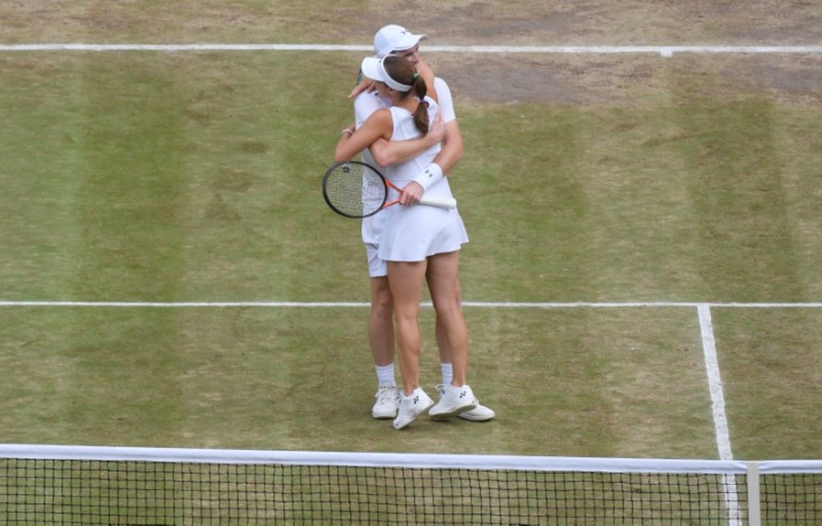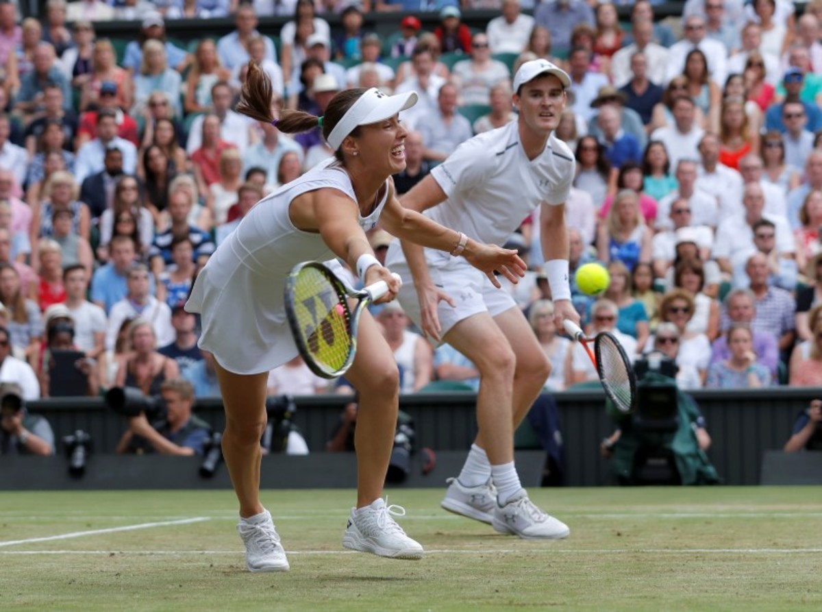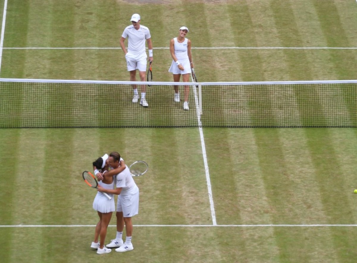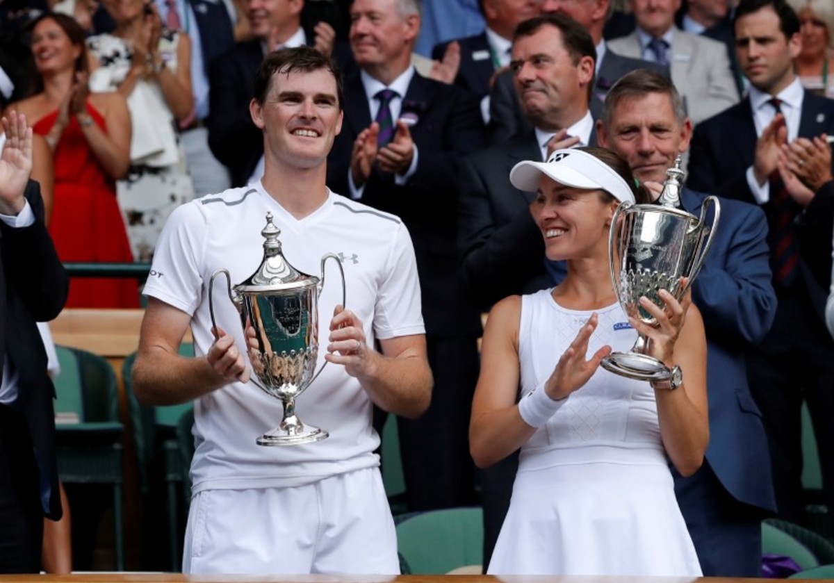 Tennis - Wimbledon - London, Britain - July 16, 2017 Great Britain’s Jamie Murray and Switzerland’s Martina Hingis celebrate winning the mixed doubles final against Finland’s Henri Kontinen and Great Britain’s Heather Watson REUTERS/Toby MelvilleTennis - Wimbledon - London, Britain - July 16, 2017 Great Britain’s Jamie Murray and Switzerland’s Martina Hingis with Finland’s Henri Kontinen and Great Britain’s Heather Watson after winning the mixed doubles final REUTERS/Toby MelvilleTennis - Wimbledon - London, Britain - July 16, 2017 Great Britain’s Jamie Murray and Switzerland’s Martina Hingis celebrate winning the mixed doubles final against Finland’s Henri Kontinen and Great Britain’s Heather Watson REUTERS/Toby MelvilleTennis - Wimbledon - London, Britain - July 16, 2017 Great Britain’s Jamie Murray and Switzerland’s Martina Hingis celebrate winning the mixed doubles final against Finland’s Henri Kontinen and Great Britain’s Heather Watson REUTERS/Toby MelvilleTennis - Wimbledon - London, Britain - July 16, 2017 Great Britain’s Jamie Murray and Switzerland’s Martina Hingis in action during the mixed doubles final against Finland’s Henri Kontinen and Great Britain’s Heather Watson REUTERS/Andrew CouldridgeTennis - Wimbledon - London, Britain - July 16, 2017 Great Britain’s Jamie Murray and Switzerland’s Martina Hingis celebrate winning the mixed doubles final against Finland’s Henri Kontinen and Great Britain’s Heather Watson REUTERS/Andrew CouldridgeTennis - Wimbledon - London, Britain - July 16, 2017 Great Britain’s Jamie Murray and Switzerland’s Martina Hingis celebrate winning the mixed doubles final against Finland’s Henri Kontinen and Great Britain’s Heather Watson REUTERS/Andrew Couldridge