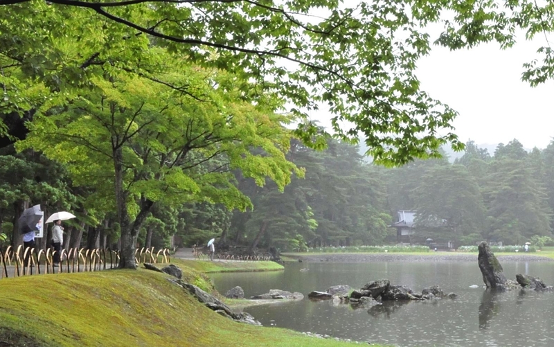 I participated in a Zen meditation session (fee and reservation required) in the hall, which helped me adjust my posture and control my breathing, before strolling through Motsuji's Pure Land Garden on the temple grounds. Amid the silence, droplets of rain created small ripples on the surface of Oizumigaike, a large pond. The leaves of trees and moss-covered stones arranged in the pond had been dampened by the rain, helping me more deeply appreciate the beauty of the garden, whose cultural value is recognized both as a special historical site and a special scenic spot.