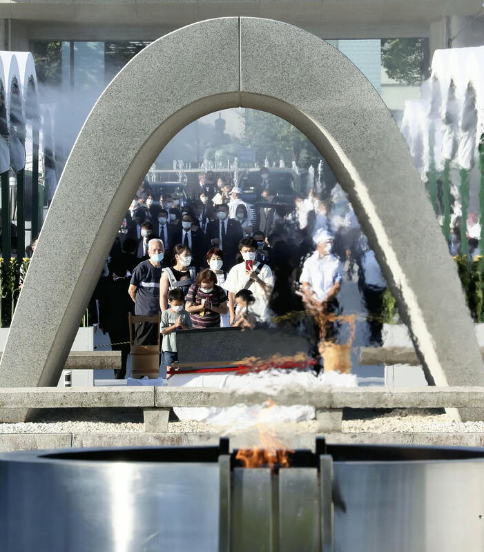 In addition to atomic bomb survivors and representatives of victims' families, Prime Minister Yoshihide Suga, various countries' ambassadors to Japan and others attended the ceremony. At 8:15 a.m., the time when the atomic bomb was dropped on Hiroshima, a representative of the surviving family members rang the Peace Bell, and the attendees observed a minute of silent prayer.