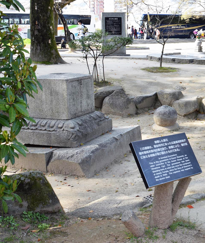 With Harada's help, I found it -- the capstone was knocked off by the atomic blast -- on a lower level surrounded by stones.