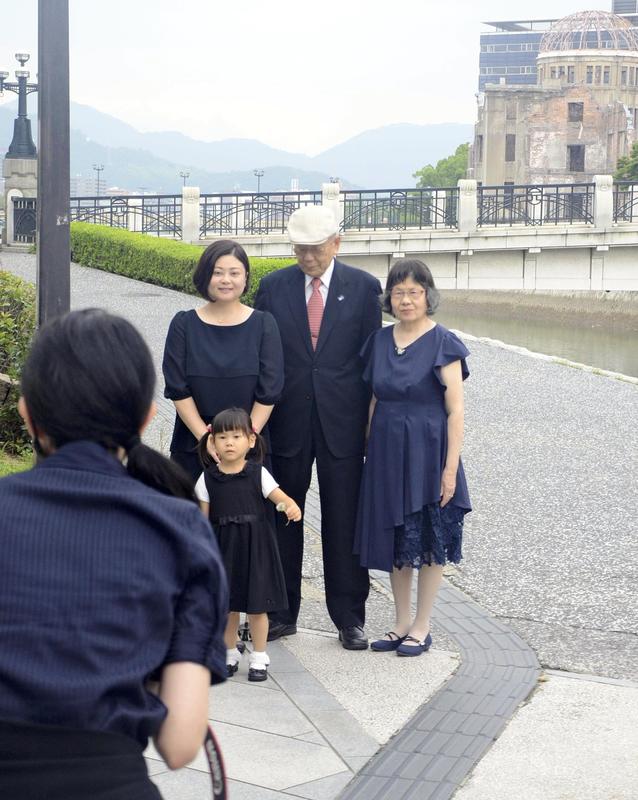 On July 26, four family members had their photos taken with the Atomic Bomb Dome in Hiroshima in the background. While taking photos, photographer Hiroko Doune, 38, said to them, "It's okay to speak naturally."