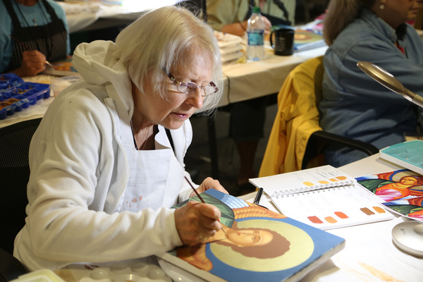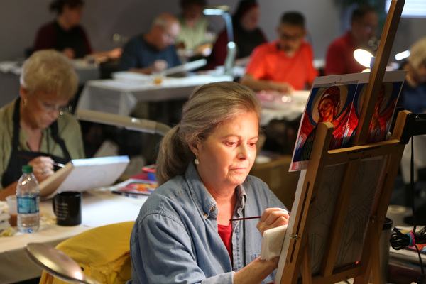 Last year, Mary Grassel created an icon of "Our Lady of the Passion," Mary holding Jesus. That workshop was in Grassel's home state of Wisconsin.