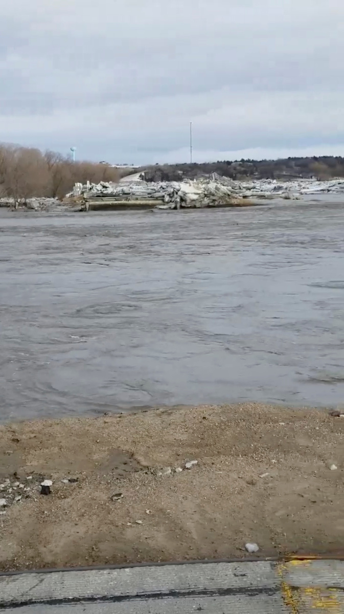 The rising water has reduced stores and homes to rubble and ripped off a long chunk of a highway bridge, according to photos posted on Twitter by Nebraska Governor Pete Ricketts. Ranchers posted images on social media of their cattle being dug out of snowdrifts or stranded in fields.