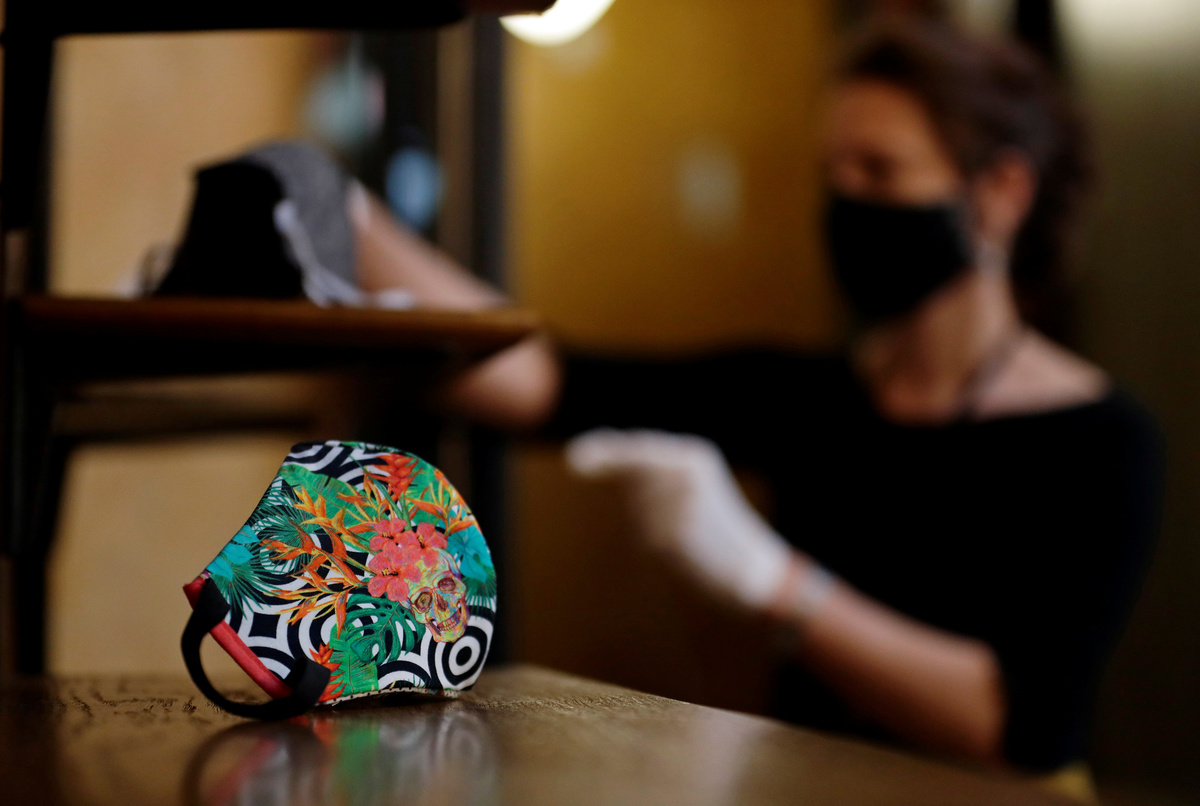 A worker prepares a face mask exhibition at the National Museum amid the coronavirus disease (COVID-19) outbreak in Prague, Czech Republic, May 21, 2020. REUTERS/David W Cerny