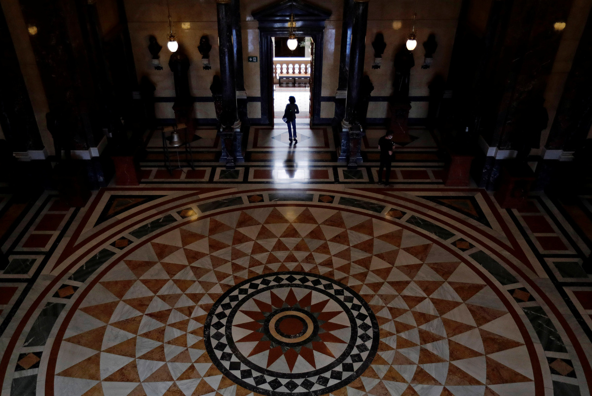 A worker prepares a face mask exhibition at the National Museum amid the coronavirus disease (COVID-19) outbreak in Prague, Czech Republic, May 21, 2020. REUTERS/David W CernyA worker prepares a face mask exhibition at the National Museum amid the coronavirus disease (COVID-19) outbreak in Prague, Czech Republic, May 21, 2020. REUTERS/David W CernyWorkers prepare a face mask exhibition at the National Museum amid the coronavirus disease (COVID-19) outbreak in Prague, Czech Republic, May 21, 2020. REUTERS/David W CernyA worker prepares a face mask exhibition at the National Museum amid the coronavirus disease (COVID-19) outbreak in Prague, Czech Republic, May 21, 2020. REUTERS/David W CernyA visitor walks through the National Museum amid the coronavirus disease (COVID-19) outbreak in Prague, Czech Republic, May 21, 2020. REUTERS/David W CernyA worker prepares a face mask exhibition at the National Museum amid the coronavirus disease (COVID-19) outbreak in Prague, Czech Republic, May 21, 2020. REUTERS/David W CernyA worker prepares a face mask exhibition at the National Museum amid the coronavirus disease (COVID-19) outbreak in Prague, Czech Republic, May 21, 2020. REUTERS/David W Cerny