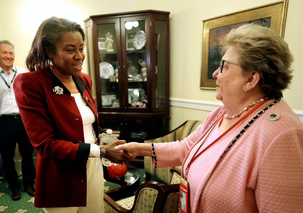 Sears has embraced President Donald Trump serving as co-chair of a group called Black Americans to Re-elect President Trump, and defending him against charges of racism. Still, she has taken action when she believes Republicans fall short on racial issues.
