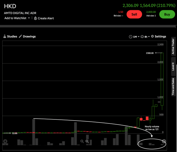 - AMTD Digital’s meteoric run has been against a backdrop of declining volume which was already low to begin with.