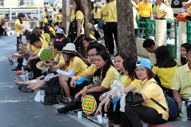 "I will be here to save a spot at 5am," Kanha Kitvej, 80, told AFP the day before, as she watched soldiers march by the palace.