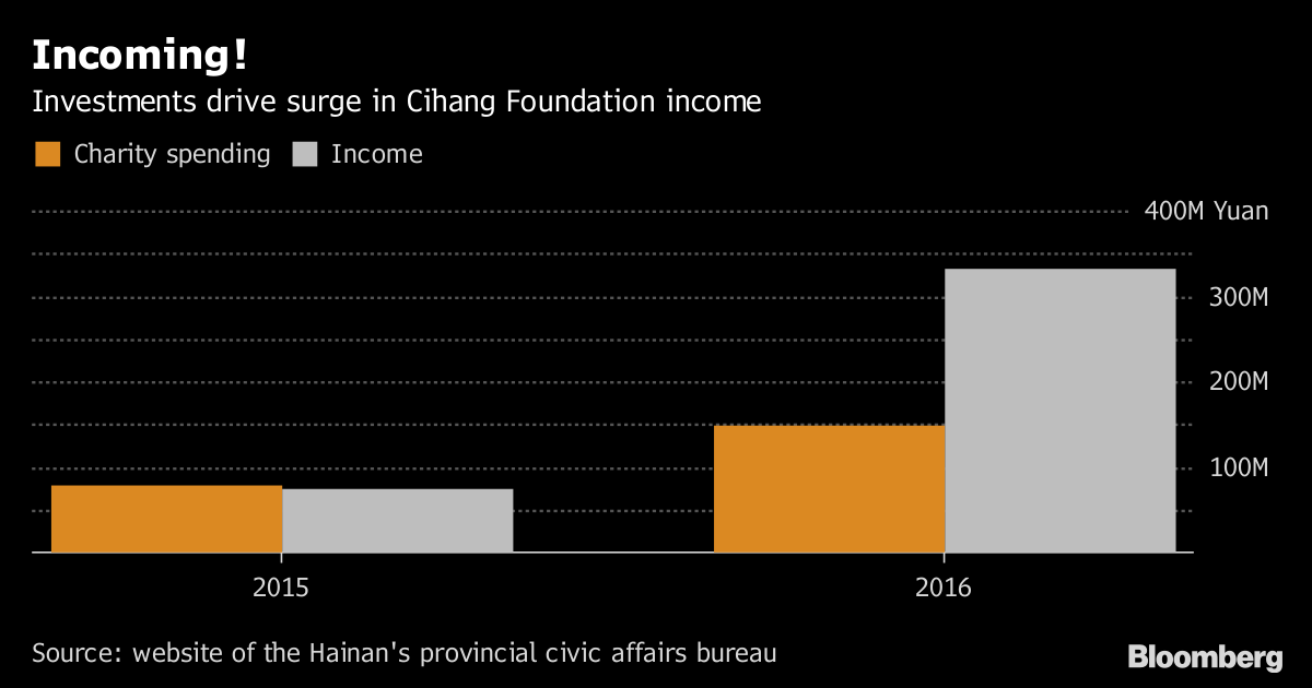 Income jumped to about 331.8 million yuan ($50 million) in 2016, from about 74 million yuan a year earlier, the foundation said in a filing on the Hainan provincial government website on Friday.