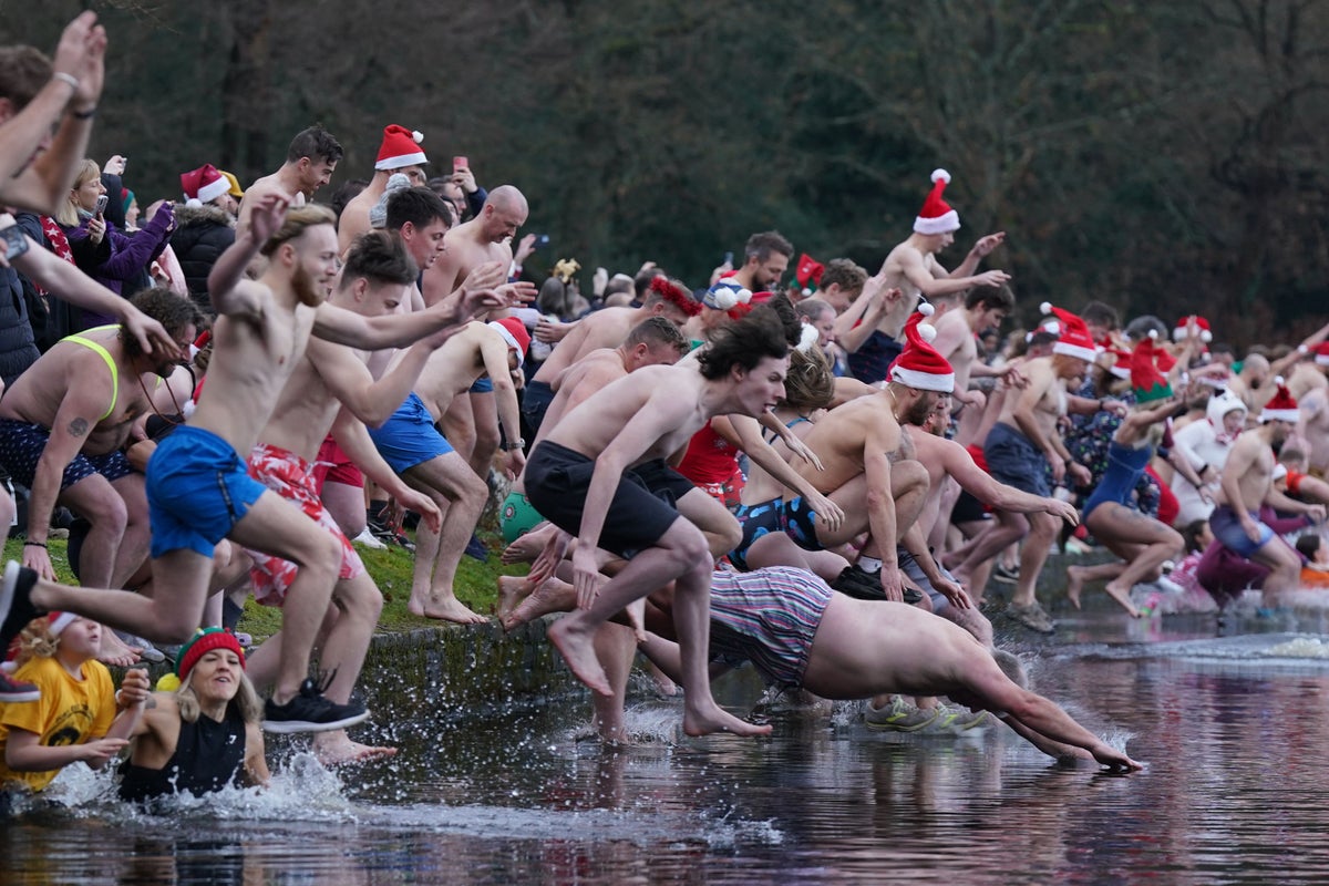People across the UK have braved the temperatures and gone swimming outdoors to kick off their Christmas Day celebrations.