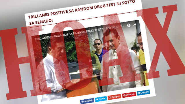 The blog dutertards.info in its July 30 post ran the headline, “Trillanes positive sa random drug test ni Sotto sa Senado!”