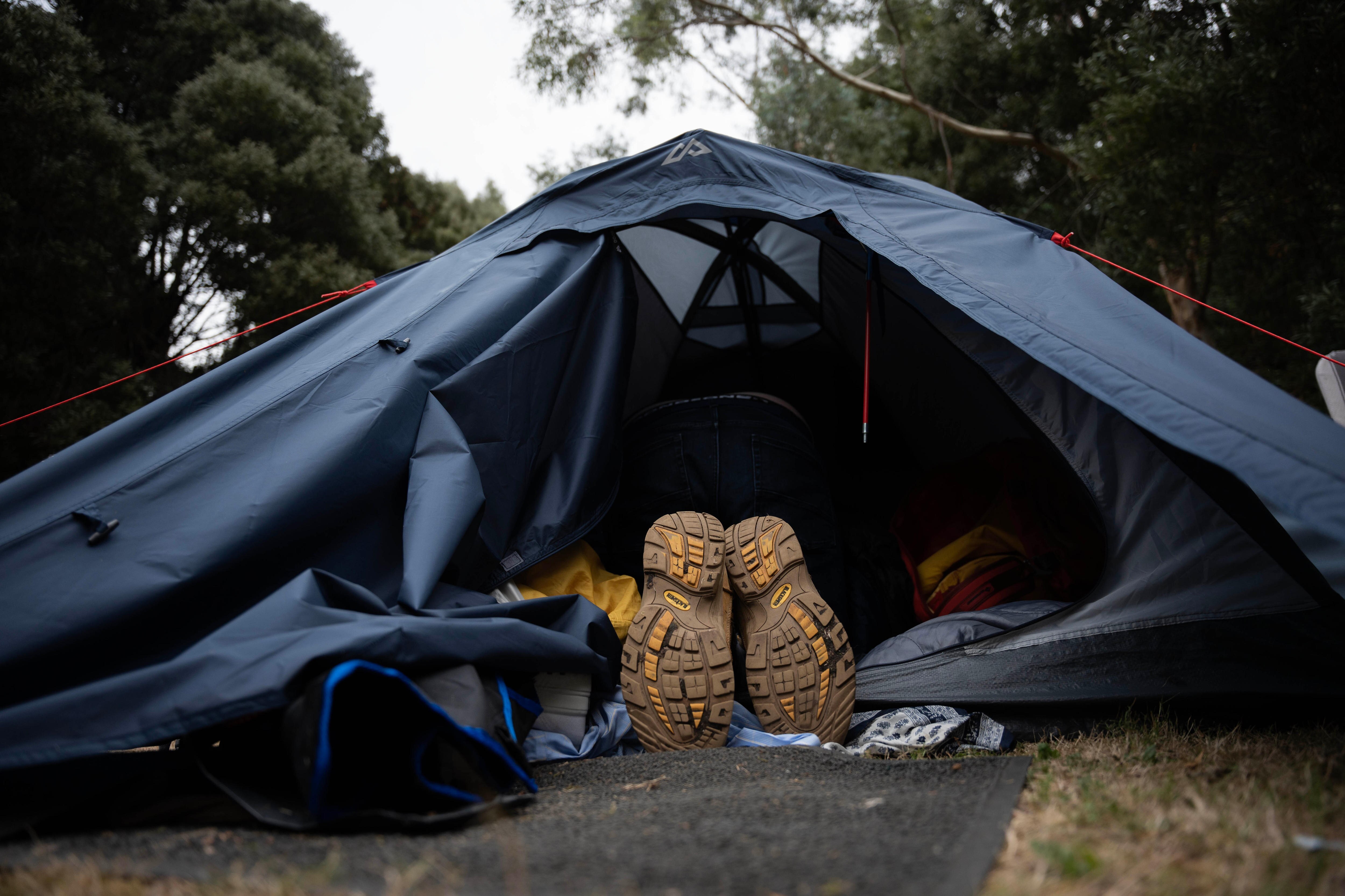 "I actually went to the op shop and bought a pair of men's boots and used to sit them outside the tent so it looked like a man was in the tent."