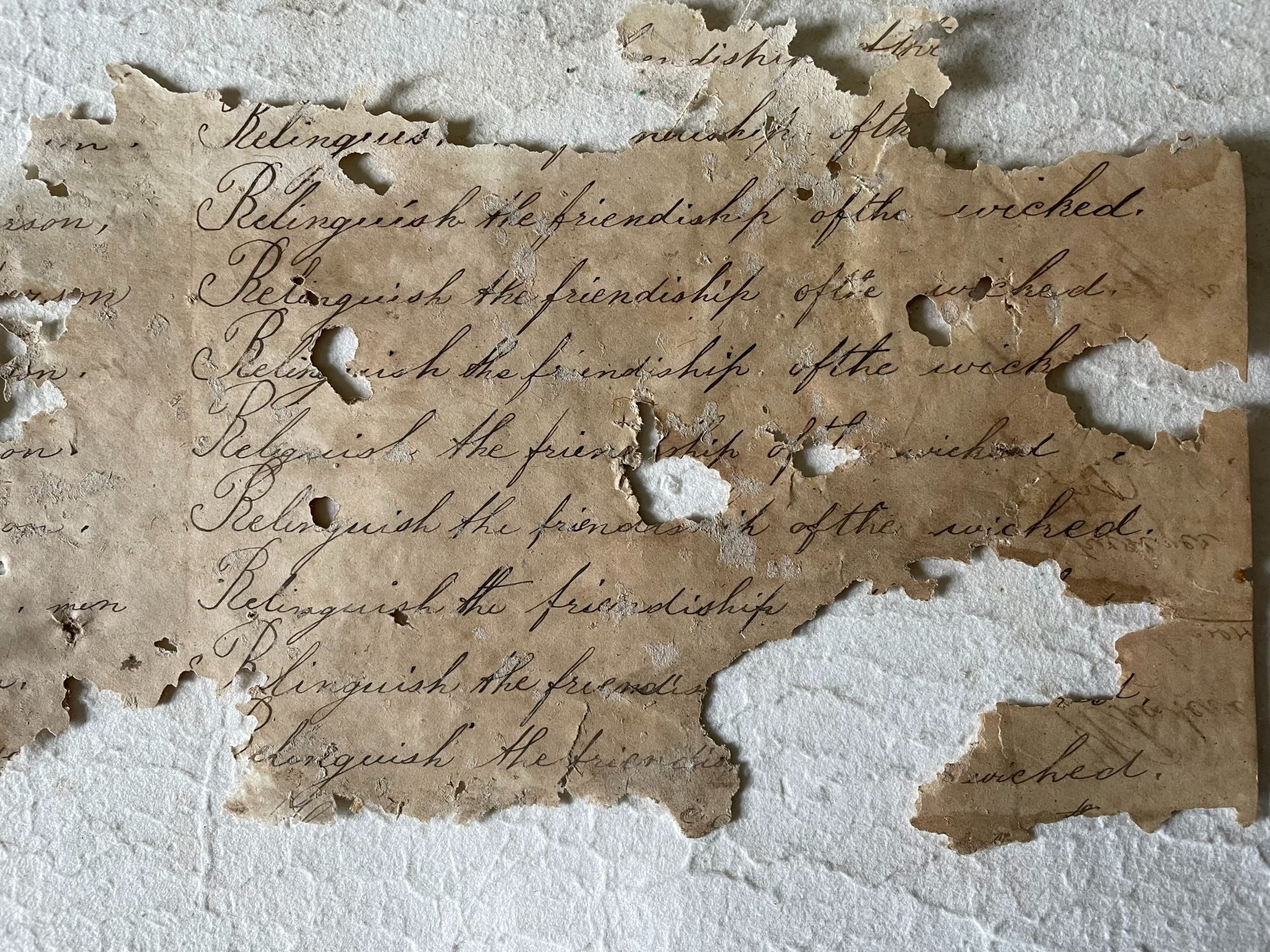 Between 1864 and 1880 the McDermotts pasted their children's homework to the wall, which Mr Townsend initially thought was for practicality rather than display.