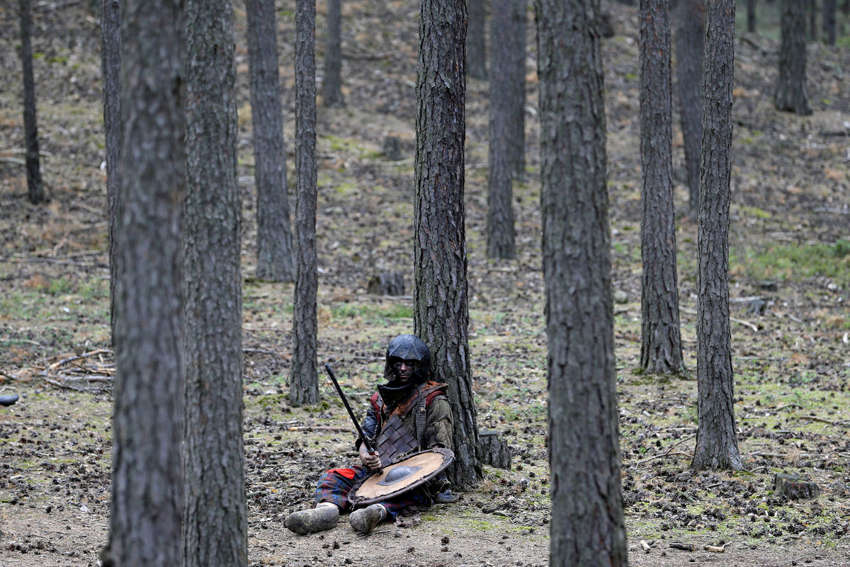 A participant dressed as a character from J.R.R. Tolkien's novel "The Hobbit" takes part in a reenactment of the "Battle of Five Armies" in a forest near the town of Doksy, Czech Republic, June 16, 2018. Picture taken June 16, 2018. REUTERS/David W Cerny