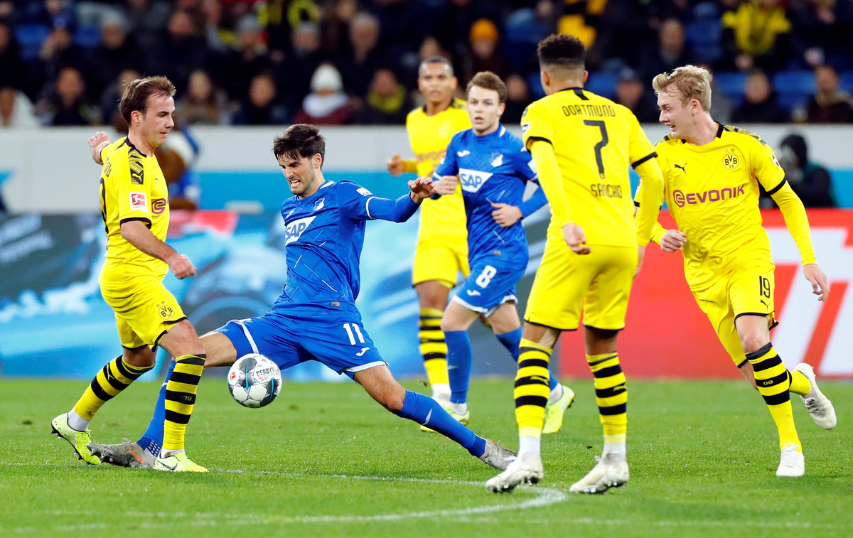 Soccer Football - Bundesliga - TSG 1899 Hoffenheim v Borussia Dortmund - PreZero Arena, Sinsheim, Germany - December 20, 2019 Borussia Dortmund's Mario Gotze in action with TSG 1899 Hoffenheim's Florian Grillitsch REUTERS/Ralph Orlowski DFL regulations prohibit any use of photographs as image sequences and/or quasi-video