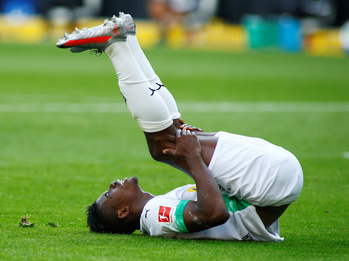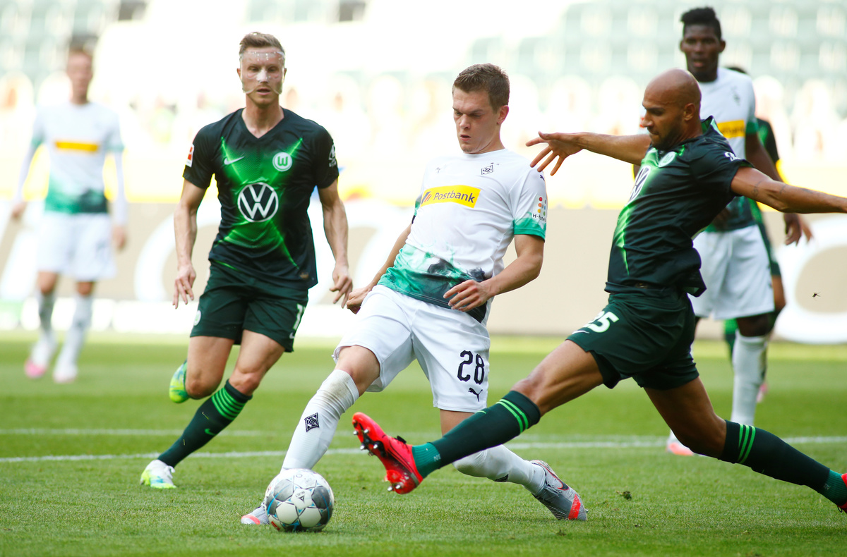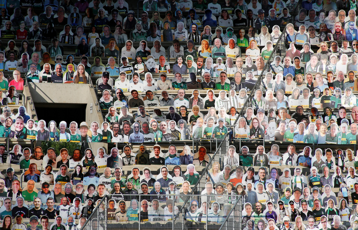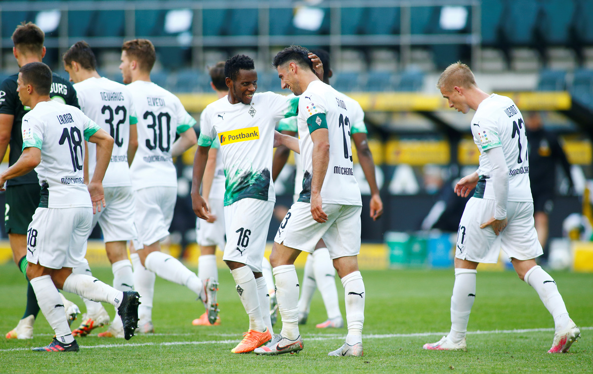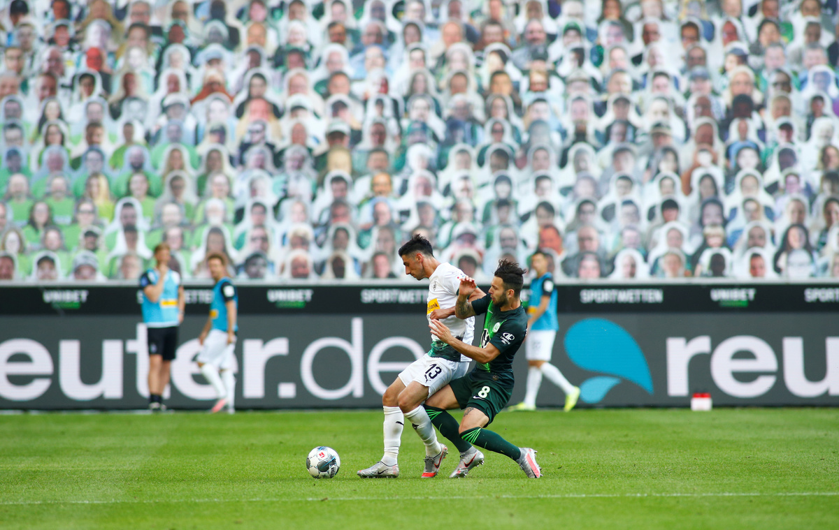Soccer Football - Bundesliga - Borussia Moenchengladbach v VfL Wolfsburg - Borussia-Park, Moenchengladbach, Germany - June 16, 2020 Borussia Moenchengladbach's Jonas Hofmann in action, following the resumption of play behind closed doors after the outbreak of the coronavirus disease (COVID-19) REUTERS/Thilo Schmuelgen/Pool Soccer Football - Bundesliga - Borussia Moenchengladbach v VfL Wolfsburg - Borussia-Park, Moenchengladbach, Germany - June 16, 2020 Borussia Moenchengladbach's Lars Stindl, following the resumption of play behind closed doors after the outbreak of the coronavirus disease (COVID-19) REUTERS/Thilo Schmuelgen/Pool Soccer Football - Bundesliga - Borussia Moenchengladbach v VfL Wolfsburg - Borussia-Park, Moenchengladbach, Germany - June 16, 2020 Borussia Moenchengladbach's Matthias Ginter in action with VfL Wolfsburg's John Brooks, following the resumption of play behind closed doors after the outbreak of the coronavirus disease (COVID-19) REUTERS/Thilo Schmuelgen/Pool Soccer Football - Bundesliga - Borussia Moenchengladbach v VfL Wolfsburg - Borussia-Park, Moenchengladbach, Germany - June 16, 2020 Borussia Moenchengladbach's Lars Stindl celebrates scoring their third goal with teammates, following the resumption of play behind closed doors after the outbreak of the coronavirus disease (COVID-19) REUTERS/Thilo Schmuelgen/Pool Soccer Football - Bundesliga - Borussia Moenchengladbach v VfL Wolfsburg - Borussia-Park, Moenchengladbach, Germany - June 16, 2020 Borussia Moenchengladbach's Christoph Kramer in action with VfL Wolfsburg's Yannick Gerhardt, following the resumption of play behind closed doors after the outbreak of the coronavirus disease (COVID-19) REUTERS/Thilo Schmuelgen/Pool Soccer Football - Bundesliga - Borussia Moenchengladbach v VfL Wolfsburg - Borussia-Park, Moenchengladbach, Germany - June 16, 2020 Borussia Moenchengladbach's Breel Embolo reacts, following the resumption of play behind closed doors after the outbreak of the coronavirus disease (COVID-19) REUTERS/Thilo Schmuelgen/Pool Soccer Football - Bundesliga - Borussia Moenchengladbach v VfL Wolfsburg - Borussia-Park, Moenchengladbach, Germany - June 16, 2020 Borussia Moenchengladbach's Jonas Hofmann celebrates scoring their second goal with Matthias Ginter, following the resumption of play behind closed doors after the outbreak of the coronavirus disease (COVID-19) REUTERS/Thilo Schmuelgen/Pool Soccer Football - Bundesliga - Borussia Moenchengladbach v VfL Wolfsburg - Borussia-Park, Moenchengladbach, Germany - June 16, 2020 Borussia Moenchengladbach's Lars Stindl with referee Robert Schroder, following the resumption of play behind closed doors after the outbreak of the coronavirus disease (COVID-19) REUTERS/Thilo Schmuelgen/Pool Soccer Football - Bundesliga - Borussia Moenchengladbach v VfL Wolfsburg - Borussia-Park, Moenchengladbach, Germany - June 16, 2020 VfL Wolfsburg's Robin Knoche looks dejected after the match, following the resumption of play behind closed doors after the outbreak of the coronavirus disease (COVID-19) REUTERS/Thilo Schmuelgen/Pool Soccer Football - Bundesliga - Borussia Moenchengladbach v VfL Wolfsburg - Borussia-Park, Moenchengladbach, Germany - June 16, 2020 General view during the match, following the resumption of play behind closed doors after the outbreak of the coronavirus disease (COVID-19) REUTERS/Thilo Schmuelgen/Pool Soccer Football - Bundesliga - Borussia Moenchengladbach v VfL Wolfsburg - Borussia-Park, Moenchengladbach, Germany - June 16, 2020 Borussia Moenchengladbach's Lars Stindl celebrates scoring their third goal with teammates, following the resumption of play behind closed doors after the outbreak of the coronavirus disease (COVID-19) REUTERS/Thilo Schmuelgen/Pool Soccer Football - Bundesliga - Borussia Moenchengladbach v VfL Wolfsburg - Borussia-Park, Moenchengladbach, Germany - June 16, 2020 Cutout photos of fans in the stands, following the resumption of play behind closed doors after the outbreak of the coronavirus disease (COVID-19) REUTERS/Thilo Schmuelgen/Pool