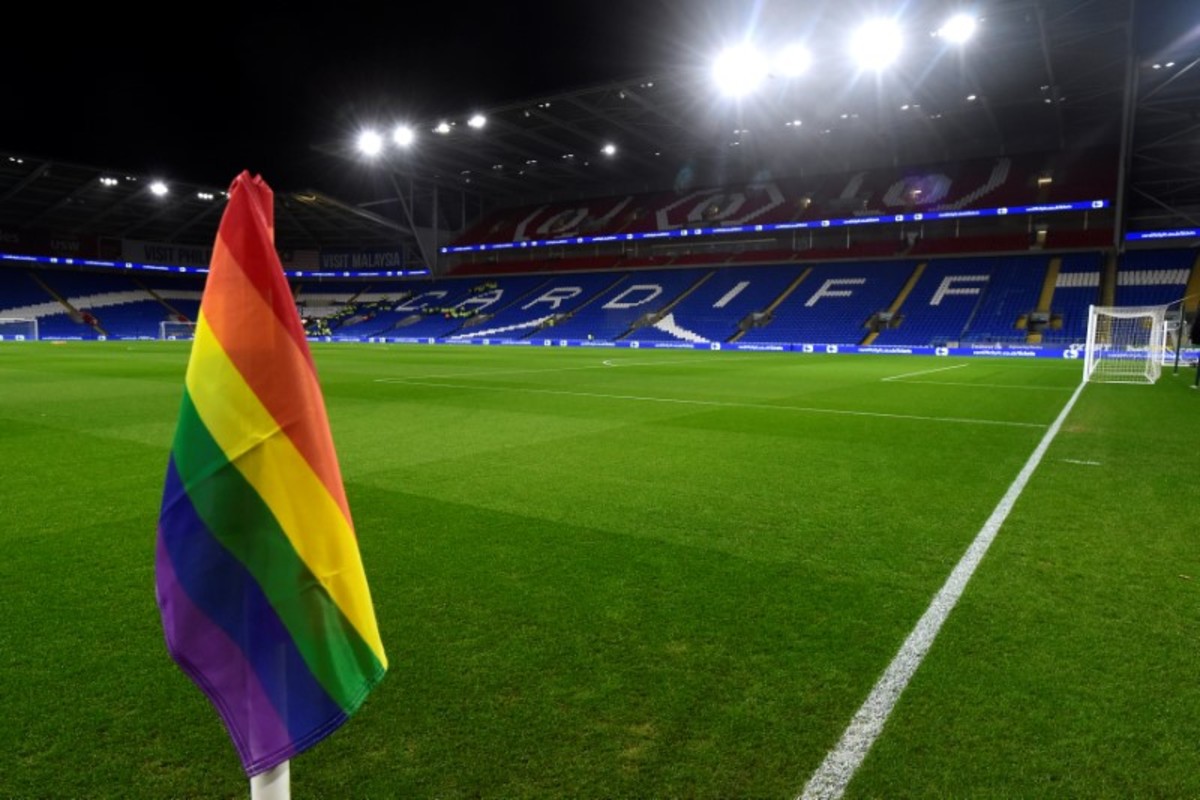 Soccer Football - Premier League - Cardiff City v Wolverhampton Wanderers - Cardiff City Stadium, Cardiff, Britain - November 30, 2018 General view of a rainbow corner flag being used as part of Stonewall’s annual campaign REUTERS/Rebecca Naden