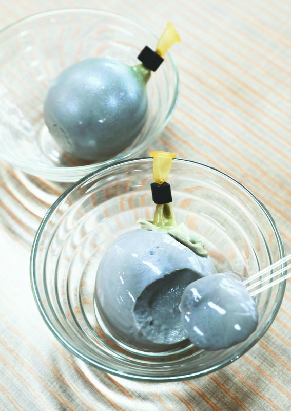 It takes two days to complete each squid, from the hardening of the liquefied yokan to making the shapes of the head, body, 10 arms and tentacles, and putting coffee-flavored red bean paste within. Each squid costs 1,188 yen.