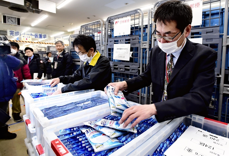In Kitami, the masks were sorted by address at the city's main post office, and letter carriers on motorbikes put a bag of seven masks in each household's mailbox.