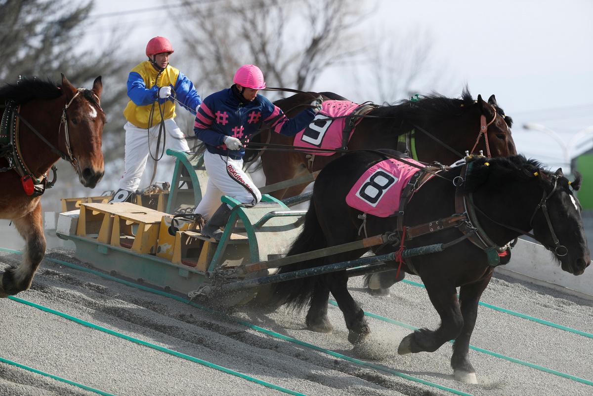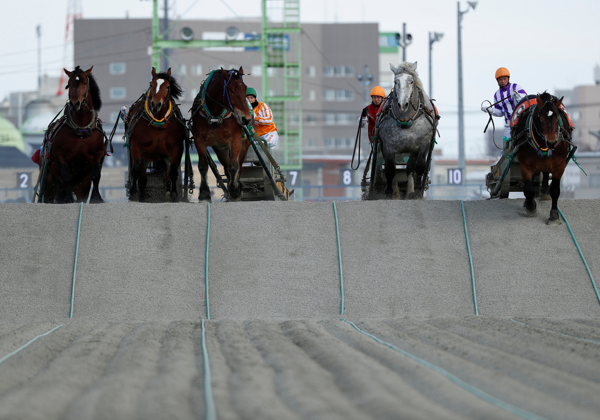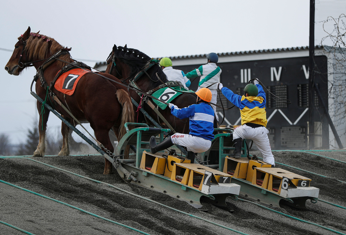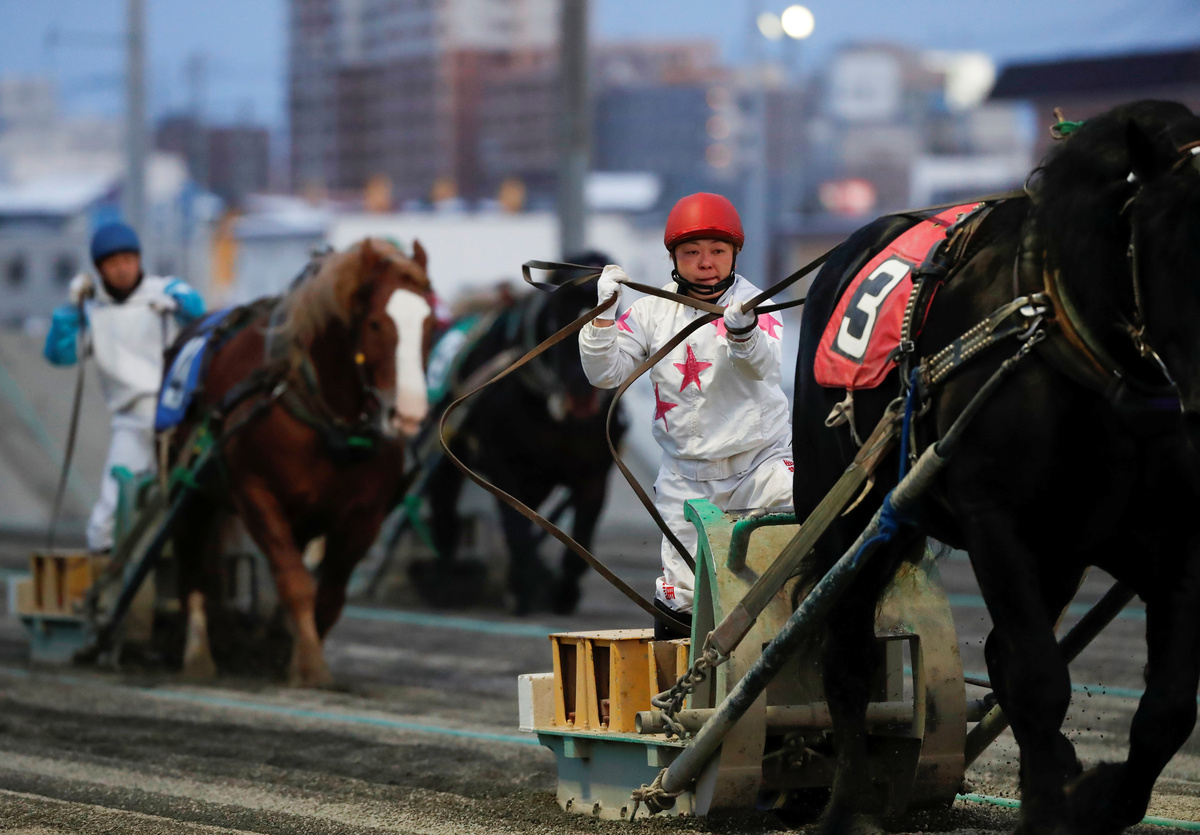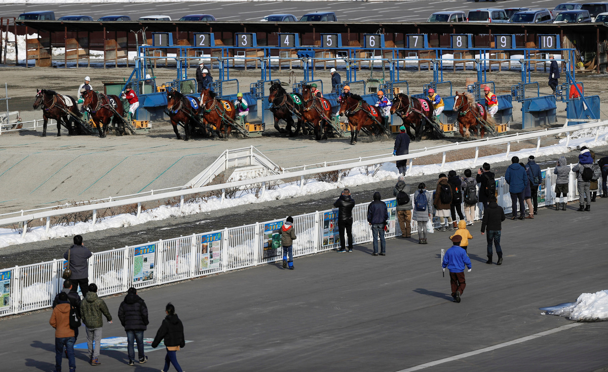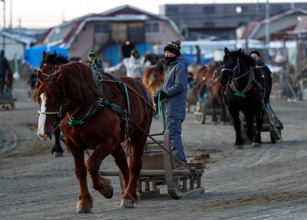 A 'Banei' horse is seen before the 'Banei' Keiba race, a form of farmhorse racing, at Obihiro 'Banei' horse Race Track in Obihiro, Hokkaido, Japan February 24, 2020. REUTERS/Issei KatoA man works at stable area at Obihiro 'Banei' horse Race Track in Obihiro, Hokkaido, Japan February 24, 2020. REUTERS/Issei KatoA 'Banei' horse competes during the race of 'Banei' Keiba, a form of farmhorse racing, at Obihiro 'Banei' horse Race Track in Obihiro, Hokkaido, Japan February 24, 2020. REUTERS/Issei KatoJockeys and 'Banei' horses compete during their 'Banei' Keiba race, a form of farmhorse racing, at Obihiro 'Banei' horse Race Track in Obihiro, Hokkaido, Japan February 24, 2020.REUTERS/Issei KatoJockeys and 'Banei' horses start during their 'Banei' Keiba race, a form of farmhorse racing, at Obihiro 'Banei' horse Race Track in Obihiro, Hokkaido, Japan February 24, 2020. REUTERS/Issei KatoTrainers on sleds encourage 'Banei' horses during morning training session at Obihiro 'Banei' Horse Race Track in Obihiro, Hokkaido, Japan February 24, 2020. REUTERS/Issei KatoVisitors bet at 'Banei' Keiba, a form of farmhorse racing, at Obihiro 'Banei' horse Race Track in Obihiro, Hokkaido, Japan February 24, 2020. REUTERS/Issei KatoA trainer encourages a 'Banei' horse during morning training session at Obihiro 'Banei' Horse Race Track in Obihiro, Hokkaido, Japan February 24, 2020. REUTERS/Issei KatoMaya Takegahara, the only female jockey at 'Banei' Keiba race, a form of farmhorse racing, poses for a photograph at Obihiro 'Banei' horse Race Track in Obihiro, Hokkaido, Japan February 24, 2020. REUTERS/Issei KatoJockeys break after their race of 'Banei' Keiba, a form of farmhorse racing, at Obihiro 'Banei' horse Race Track in Obihiro, Hokkaido, Japan February 24, 2020. REUTERS/Issei KatoVisitors receive instructions on how to bet on 'Banei' Keiba, a form of farmhorse racing, at Obihiro 'Banei' horse Race Track in Obihiro, Hokkaido, Japan February 24, 2020. REUTERS/Issei KatoJockeys and 'Banei' horses compete during their 'Banei' Keiba race, a form of farmhorse racing, at Obihiro 'Banei' horse Race Track in Obihiro, Hokkaido, Japan February 24, 2020. REUTERS/Issei KatoMaya Takegahara, the only female jockey at 'Banei' Keiba race, a form of farmhorse racing, competes at Obihiro 'Banei' horse Race Track in Obihiro, Hokkaido, Japan February 24, 2020. REUTERS/Issei KatoVisitors bet at 'Banei' Keiba, a form of farmhorse racing, at Obihiro 'Banei' horse race track in Obihiro, Hokkaido, Japan February 24, 2020. REUTERS/Issei KatoA farrier makes a horseshoe at stable area at Obihiro 'Banei' horse Race Track in Obihiro, Hokkaido, Japan February 24, 2020. REUTERS/Issei KatoA farrier makes a horseshoe at stable area at Obihiro 'Banei' horse Race Track in Obihiro, Hokkaido, Japan February 24, 2020.REUTERS/Issei KatoTakumi Fujimoto, a veteran jockey of 'Banei' Keiba, a form of farmhorse racing, poses for a photograph at Obihiro 'Banei' horse Race Track in Obihiro, Hokkaido, Japan February 24, 2020. REUTERS/Issei Kato