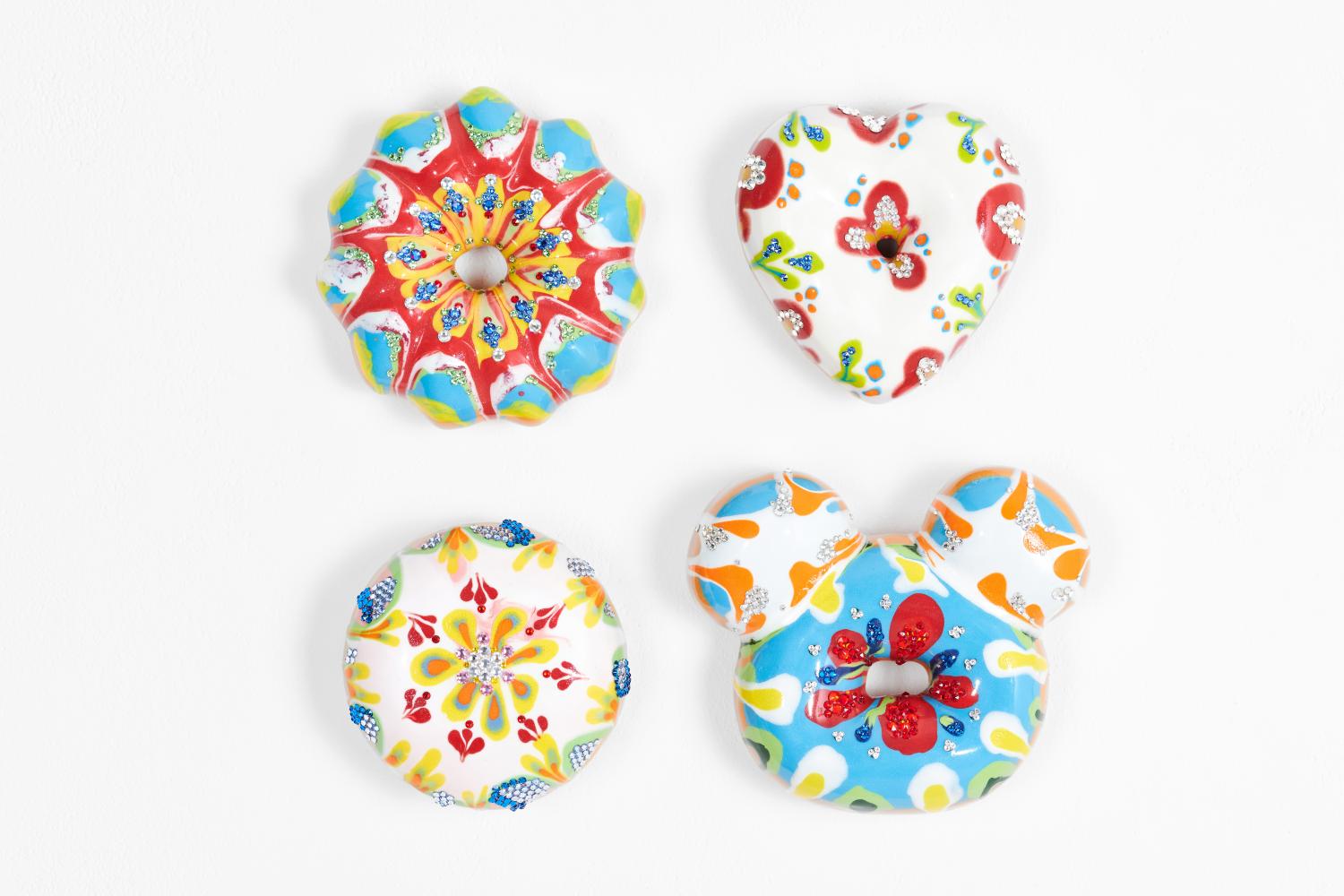 The personal touch he puts into his doughnut artwork is a sheer joy to watch. And why shouldn't it as he dips a well-baked ceramic doughnut into glossy cream concocted of lustrous glaze, and decorates it with fancy Swarovski crystals to add a sense of volume, thus resulting in its uniqueness. The variety of doughnuts in various shapes and colours will surely brighten your day as each expresses its distinctive character.