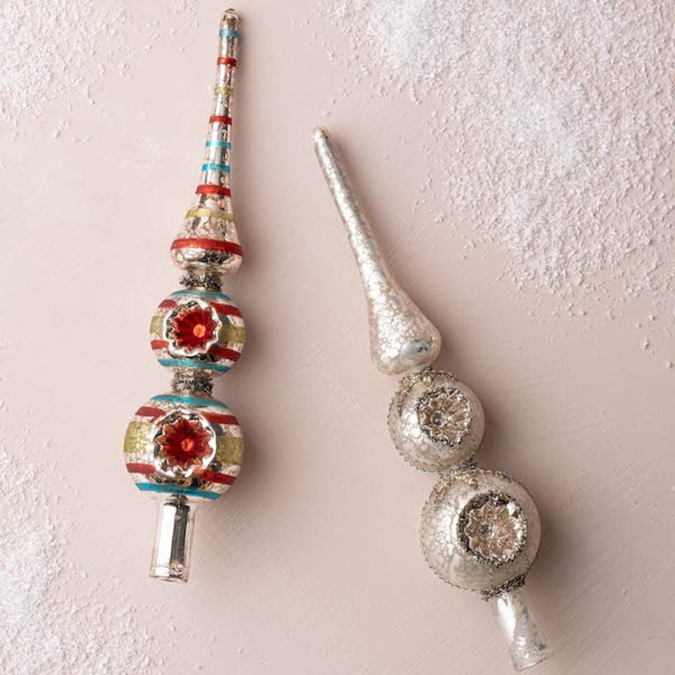 Fans of Chip and Joanna will appreciate this chic glass tree topper. Made of mercury glass, choose from either a sparkling metallic glitter or a striped finish. No tree is complete without it.