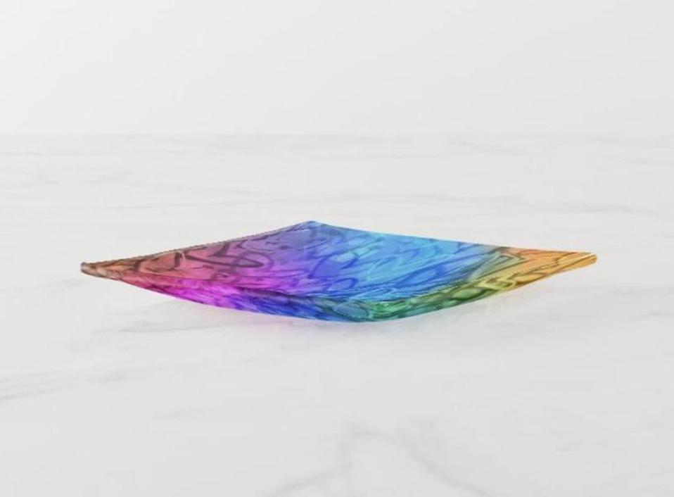 Hearts will flutter for Jessie Rubin’s Rainbow Hearts Catchall Tray. Designed by the New York based artist, this tray makes a delightful addition to a bedroom, mudroom for holding keys, or even to keep remotes on the coffee table.
