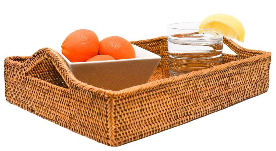 The Poppy And Safe Rattan Tray With Handles makes a beautiful addition to any home. While rattan is very much the trend right now, this piece has a timeless quality to it that can be enjoyed for years to come. It’s the right size for serving a mug of hot tea and a snack or two cocktails in glasses.