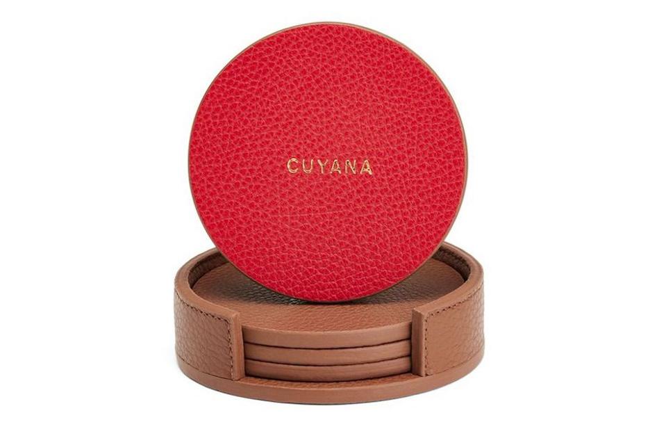 Cuyana Leather Coasters make a great gift for bachelors or anyone living in a modern space. The red pebbled leather adds a pop of color to any coffee or side table.