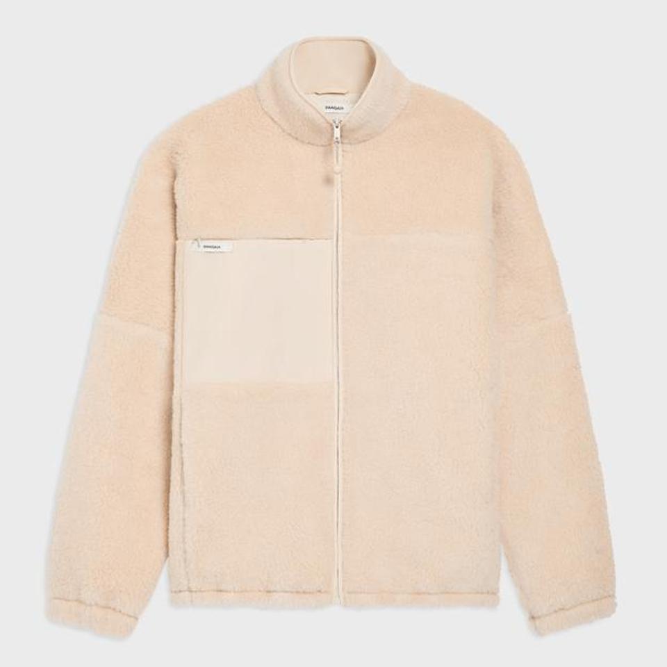 Pangaia is well-known for using recycled material to create its colorful collections. Made from partially recycled fleece, the Fleece Zipped Jacket feels soft and keeps you warm. Lined with organic cotton jersey, treated with PPRMINT™ oil for its anti-odor properties, the entire jacket is made of 75% recycled wool, 25% Tencel, with elastic cuffs, chest pockets, and a drawstring hem with an internal drawcord for a warmer fit.