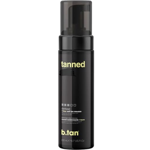 b.tan Dark Self Tanner Mousse | Get Tanned - Best, 1 Hour Express Sunless Tanning Foam, No Fake Tan Smell, Ultra Dark Bronzing Glow, Face & Body, Vegan, Cruelty Free, 6.7 Fl Oz