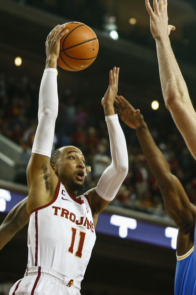 USC had raced to an early seven-point lead on the strength of some highlight passes, including a McLaughlin alley-oop lob from halfcourt that Metu grabbed for a dunk. Jordan Usher also zipped a pass inside to Stewart underneath the basket for a dunk against a late-closing Bruins defense.