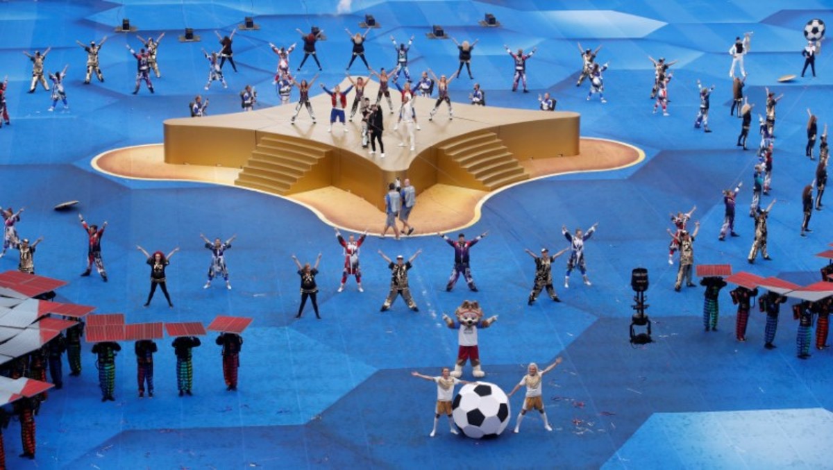 The performances were a prelude to France and Croatia's players taking to the pitch to begin their final match, in front of a packed crowd at the 80,000-seat stadium.