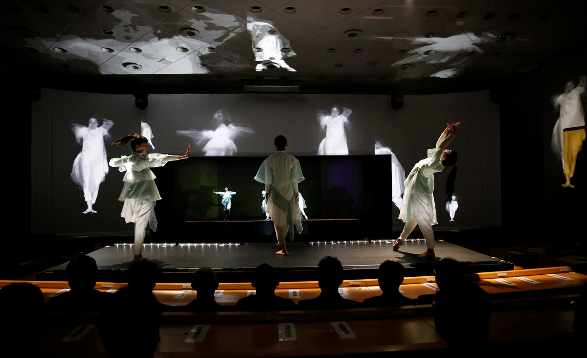 Japanese telecommunications company NTT's "Kirari! for Arena", which uses multiple cameras to track the movements of the player and images are transported to devices which show 3D hologram figures in real-time at a different location, displays visual dancers among real ones during the company's exhibition in Tokyo, Japan, February 22, 2018. REUTERS/Toru HanaiJapanese telecommunications company NTT's "Kirari! for Arena", which uses multiple cameras to track the movements of the player and images are transported to devices which show 3D hologram figures in real-time at a different location, displays visual dancers among real ones during the company's exhibition in Tokyo, Japan, February 22, 2018. REUTERS/Toru Hanai