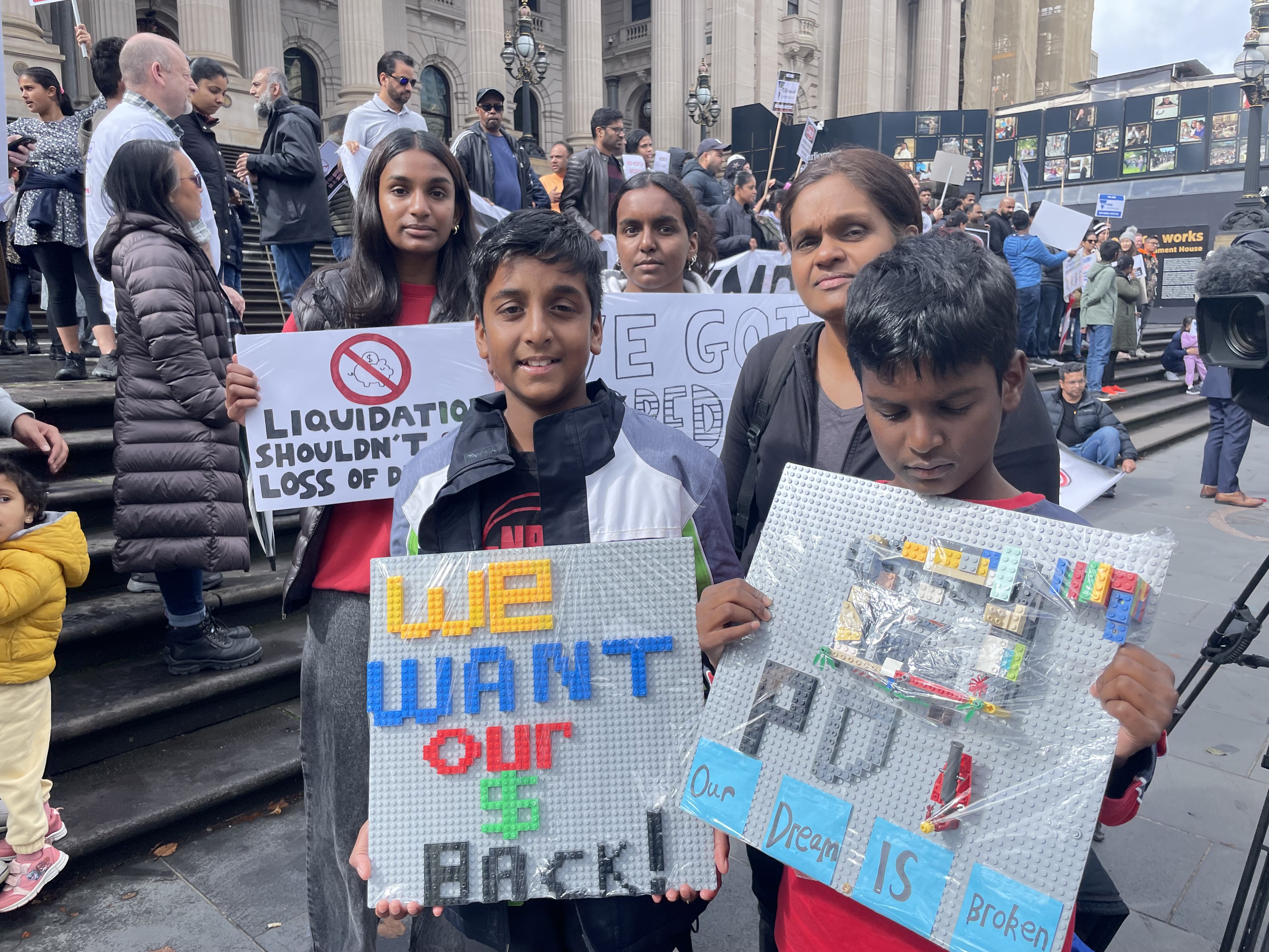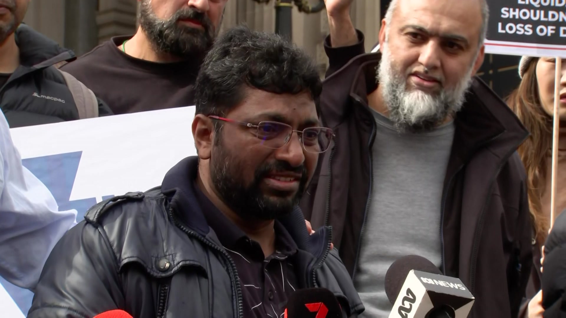 Mr Vemula was among dozens of people who gathered on the steps of the Victorian parliament to draw attention to their predicament and plead with the state government for help on Sunday.