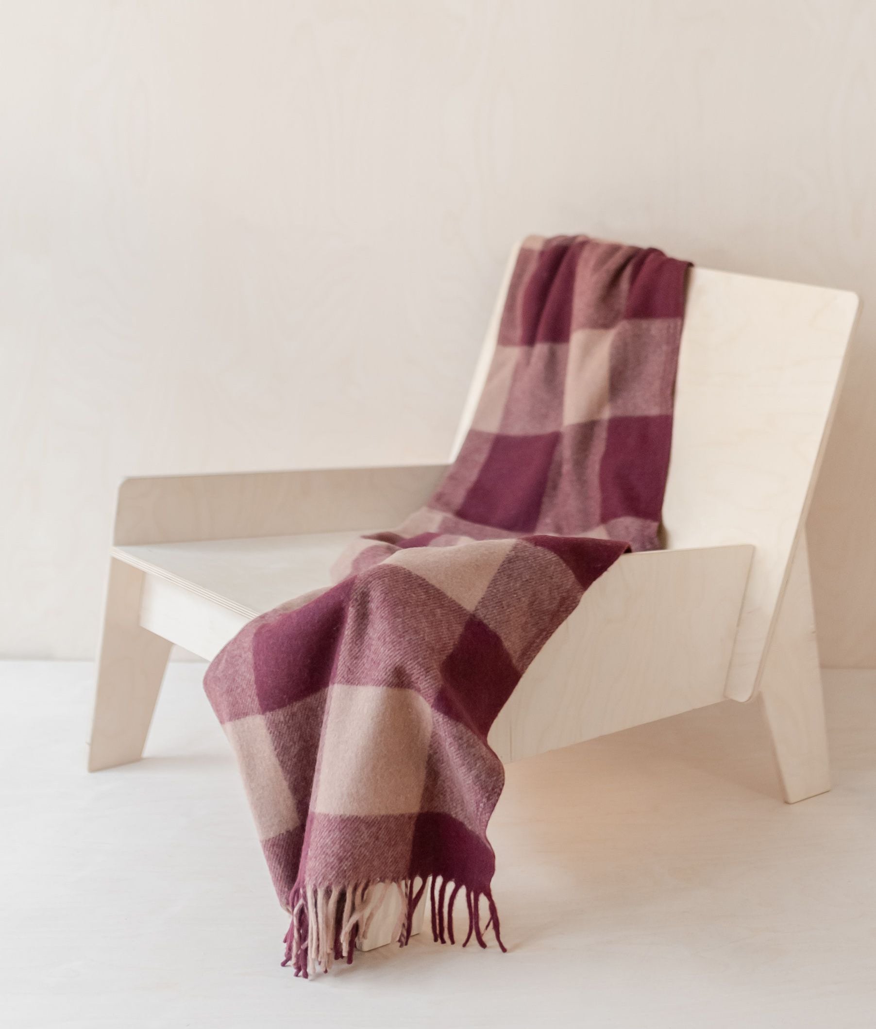 4. Recycled Wool Knee Blanket in Burgundy & Camel Buffalo Check, £40, Tartan Blanket Company