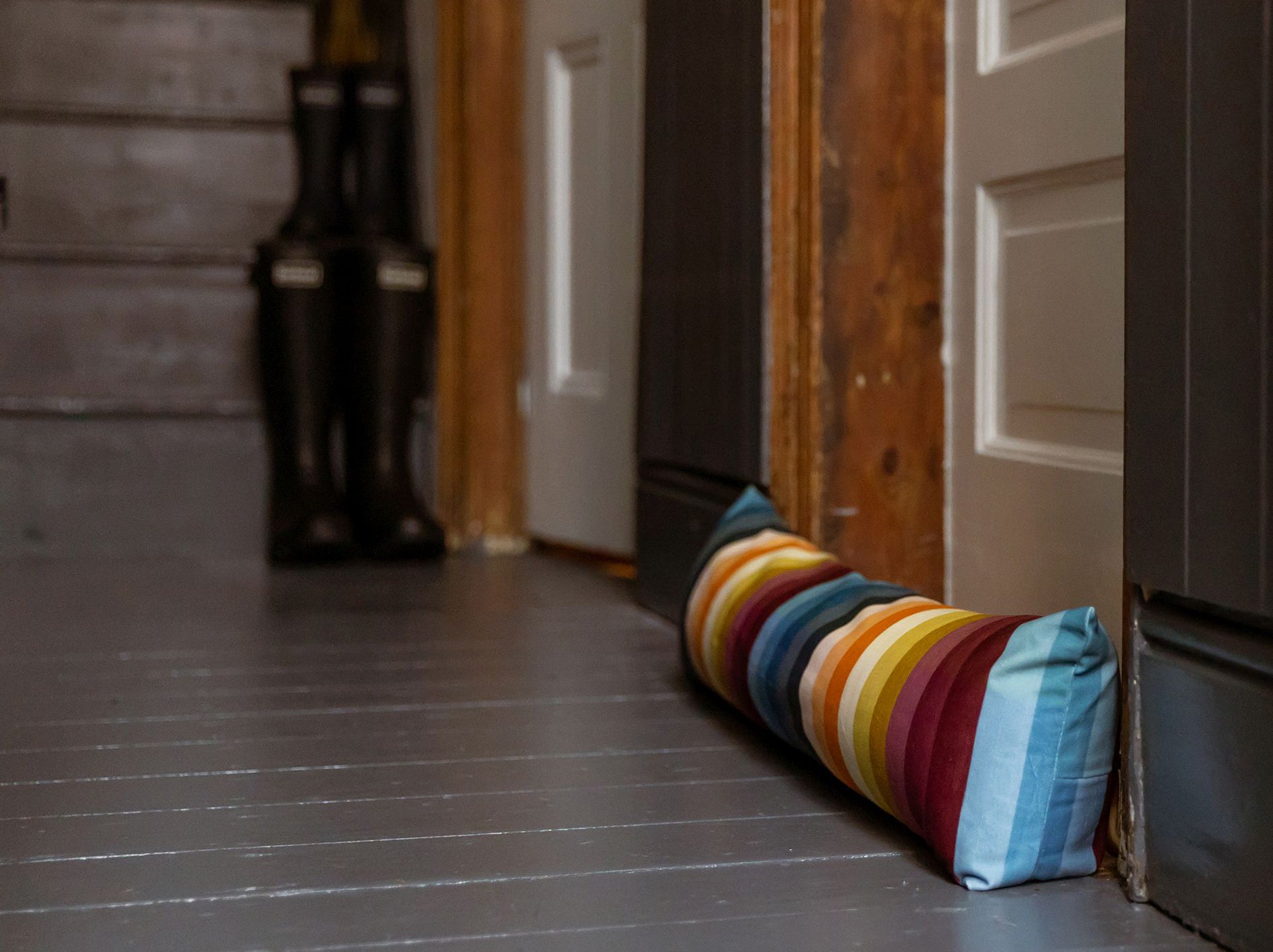 5. Luxury Velvet Draught Excluder – Pixel Stripes, from £29.99-£39.99, Celina Digby