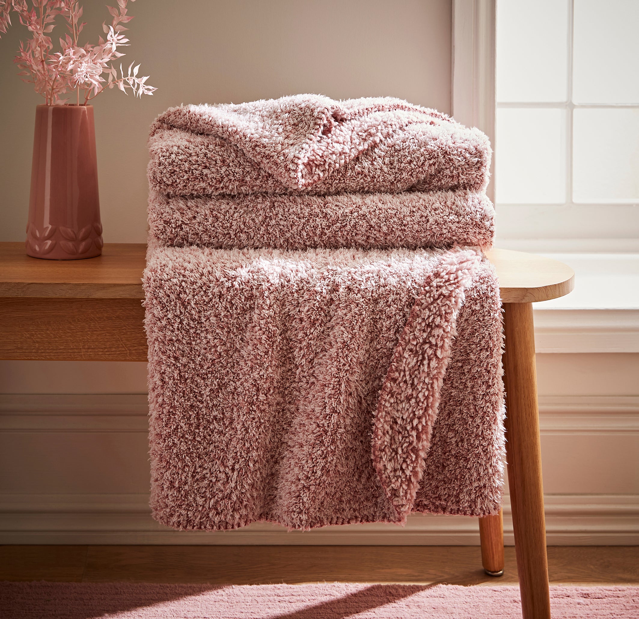 9. Teddy Bear Soft Marl Throw, Blush, from £12-£24, Dunelm