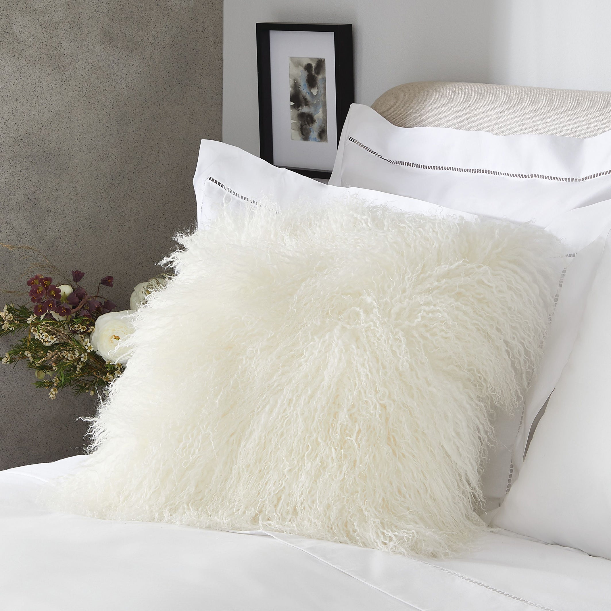 Effortlessly chic, luxuriously soft and dreamy, this silky sheepskin pillow makes a beautiful statement piece to snug up to.