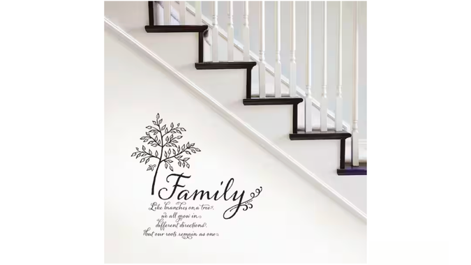 Decorating doesn’t get much easier than this. This repositionable vinyl wall art from WallPops is the perfect accent for your wall of family photos. Together, it measures one foot tall by more than two feet across, but pieces can be positioned in multiple ways to fit your space.