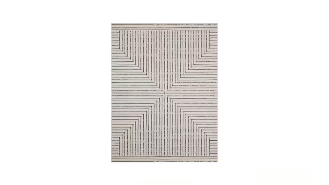 Multi-use rugs make cleaning a breeze. You can vacuum them or was with a garden hose to remove tough dirt from pets or grandkids. Home Depot describes this 8-foot by 10-foot Hampton Bay Avondale style rug as “trend-forward, durable and environmentally friendly.”