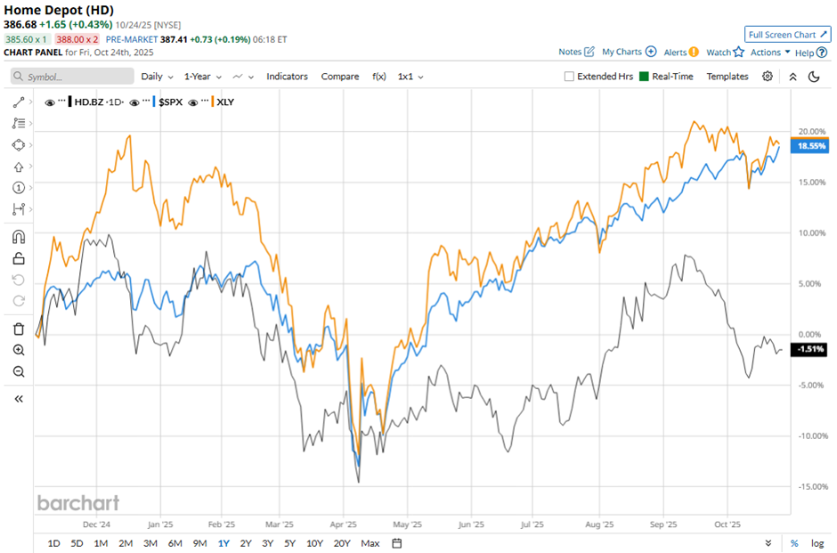 Shares of Home Depot have decreased nearly 4% over the past 52 weeks, lagging behind both the S&P 500 Index's ($SPX) 16.9% gain and the Consumer Discretionary Select Sector SPDR Fund's (XLY) 18.7% return over the period.