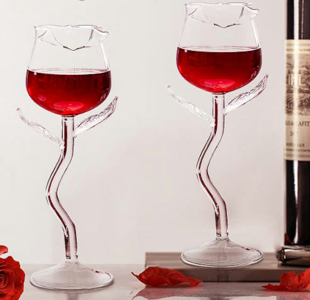 Rose-shaped cocktail glasses with art-piece energy