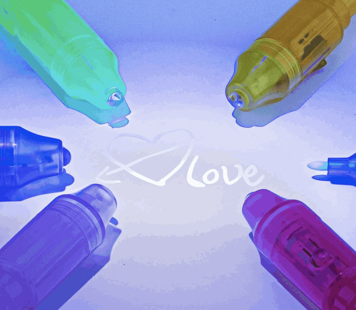 Invisible spy ink pens that come with a UV light