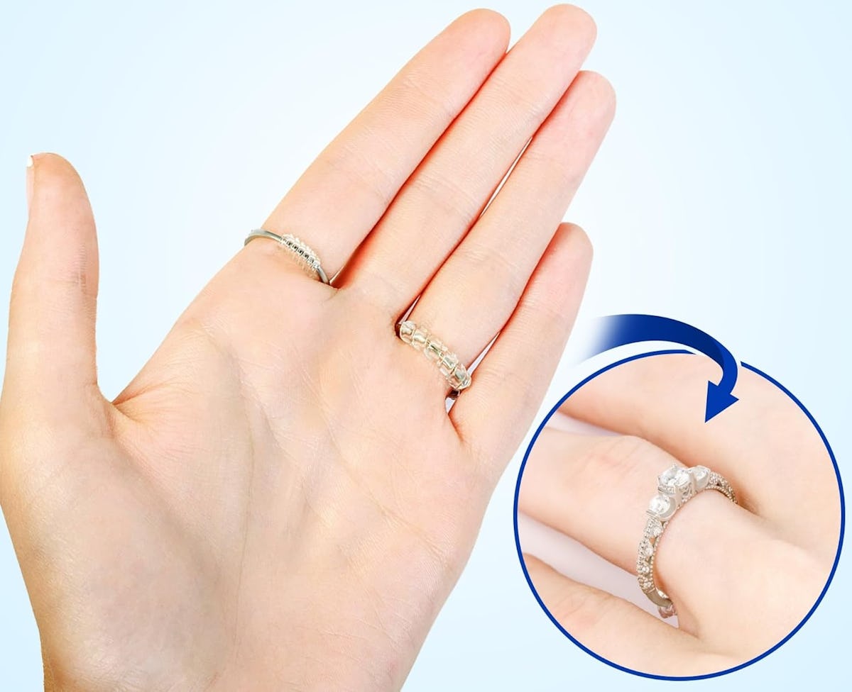 This ring sizer adjuster set comes with a variety of 12 guards, spacers, and tighteners that fit bands up to 6 millimeters, giving plenty of options for different rings. The adjusters reduce ring sizes by 0.5 to 1.5, and their nearly invisible design keeps rings looking natural. They have a cult following with over 49,000 reviews.