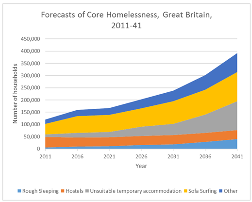 Drawing on detailed economic modelling, the Crisis report forecasts that the increase is set to continue at a growing pace, with overall numbers estimated to rise by more than a quarter in the coming decade (27 per cent) and households in unsuitable temporary accommodation set to nearly double (93 per cent).