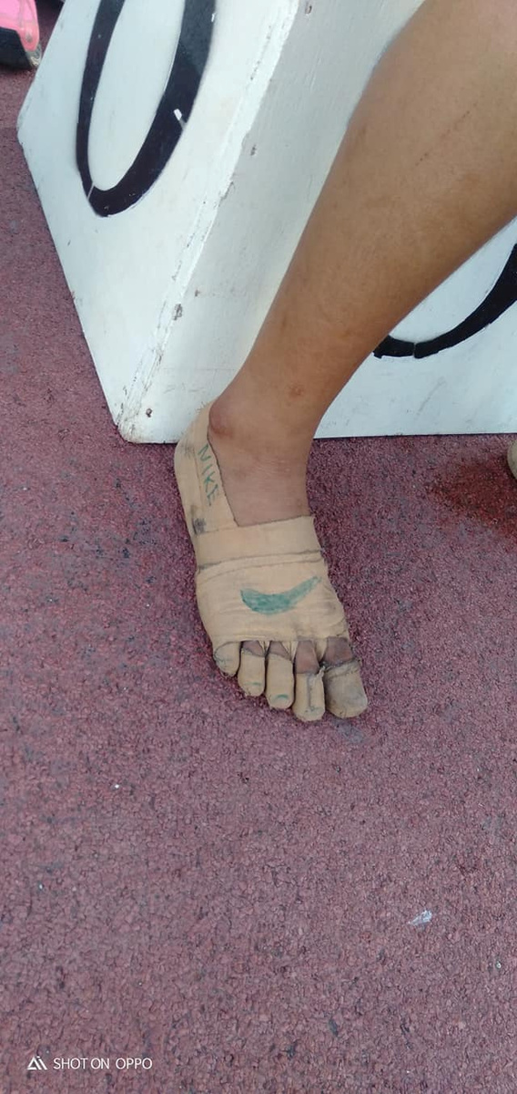 Filipina schoolgirl Rhea Bullos bagged three gold medals at an athletics competition this week without wearing shoes, opting instead to wrap her feet in tape and draw an iconic Nike "swoosh" logo on them.