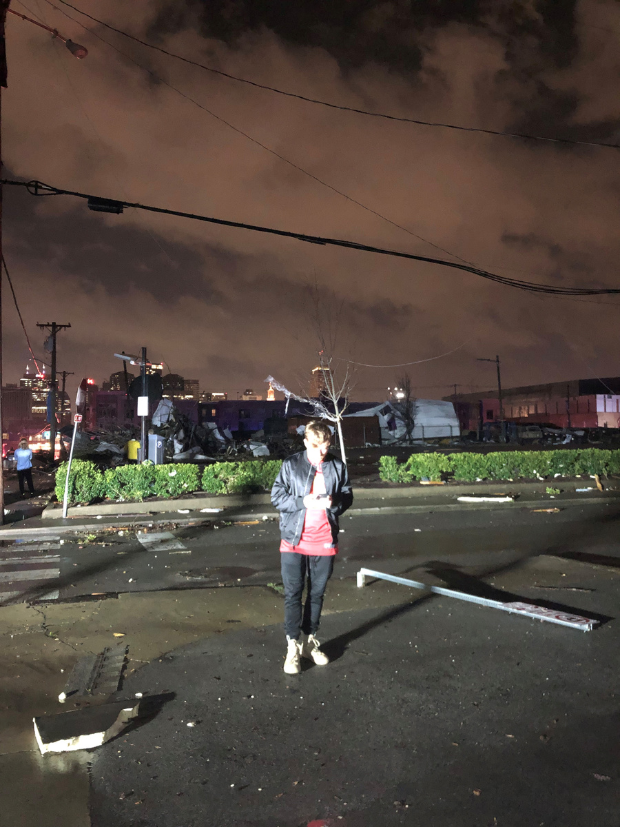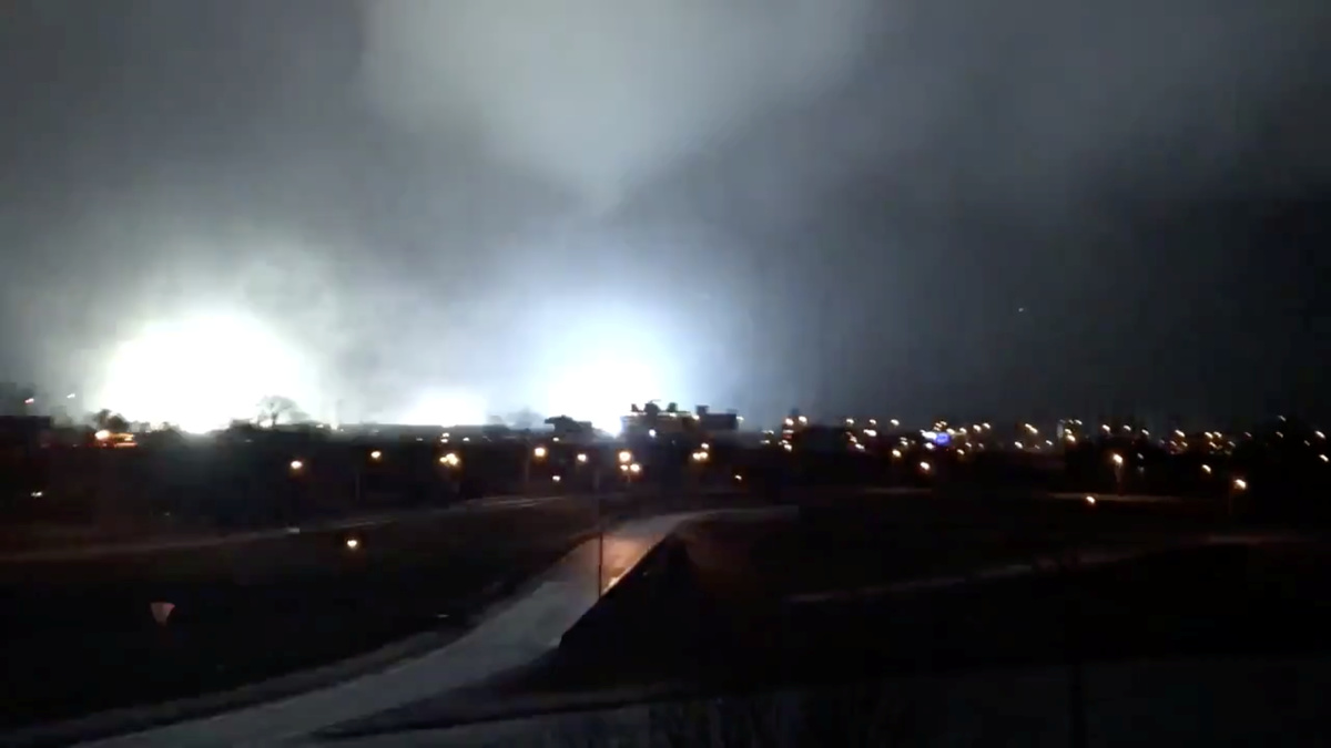 Lightning that accompanied the tornado lit up the darkened sky as the storm rumbled through central Nashville, according to video posted by Twitter user Brian Bates.